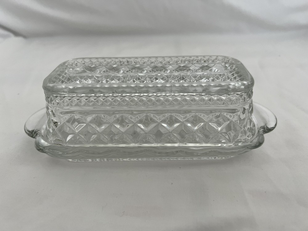 Vintage Anchor Hocking Wexford Glass Butter Dish with Diamond Point Cut Clear Cover