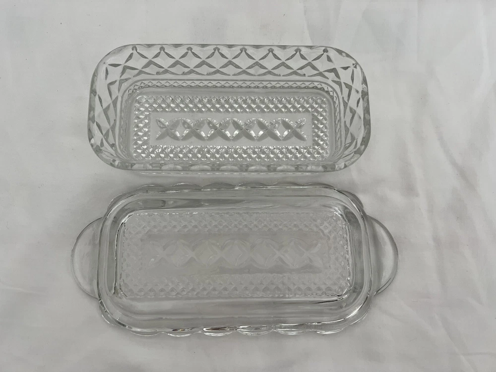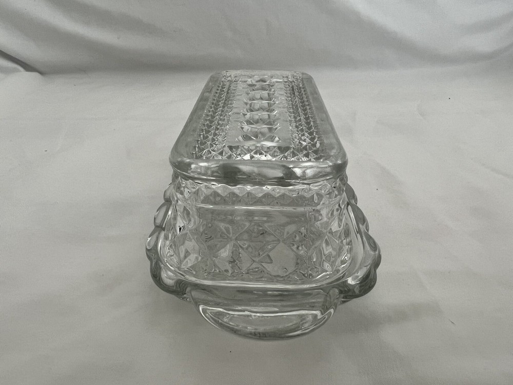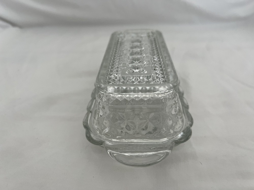HomeVintage Anchor Hocking Wexford Glass Butter Dish with Diamond Point Cut Clear Cover