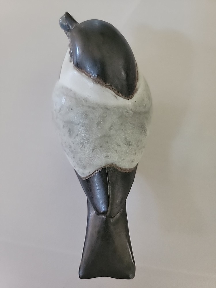This product is a vintage 1989 Andersen Design Studio pottery chickadee bird with a blueberry, originating from North America. Made of ceramic in a multicolor finish with a matte texture, this figurine represents a decorative piece from the late 20th century. Handmade and produced using pottery techniques, this unique studio art pottery showcases the craftsmanship of the brand Andersen Design Studio, making it a charming addition to any collection or decor.
