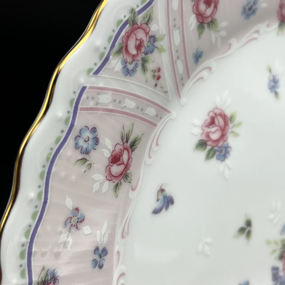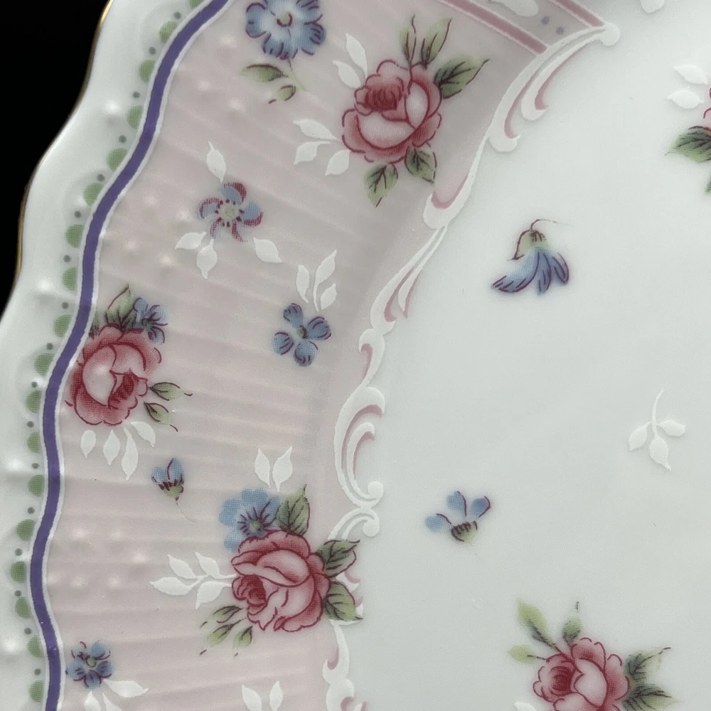 Vintage Andrea by Sadek Petit Rose Floral Cake Plate Porcelain Gold Trim 10 "