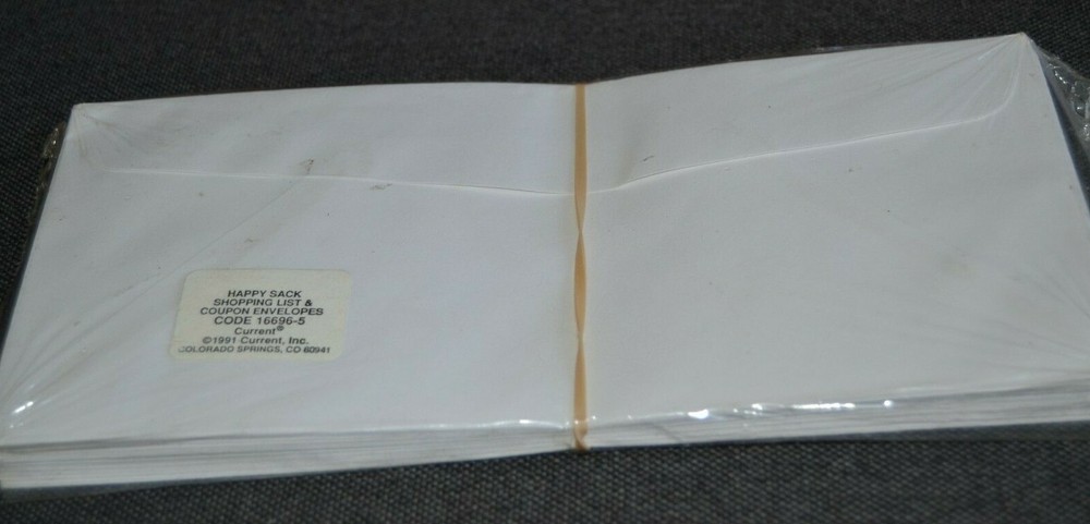 New Old Stock - plastic wrap shows wear - paper is mint! Approx. 9 1/2" long x 4 1/4" wide List is printed on envelope to hold your coupons - # of envelopes is not listed but appears to be approx. 20+ - Rubber band is under plastic wrap by Current, Inc. - FUNNY! Vintage 1990's Shopping List Note Pad ANTHROPOMORPHIC Paper Sack Current, Inc. NOS - approx. 9 1/2" long x 4 1/4" wide Flat rate shipping is $4.38 in the U.S. Please see my other note pads currently listed.