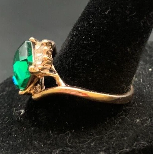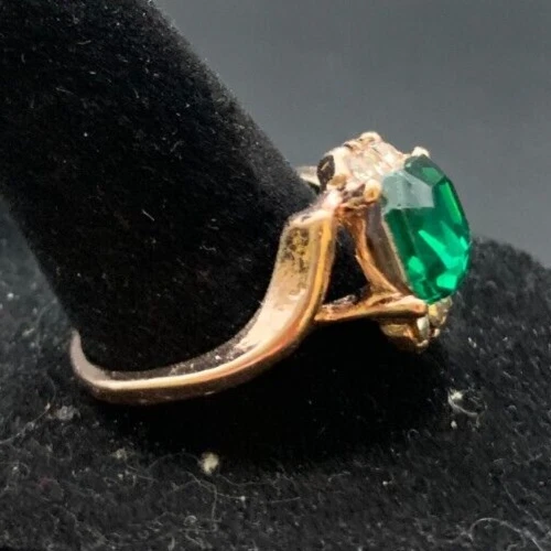Vintage Antique Gold Tone Green Rhinestone CZ Ring - Size 9.5