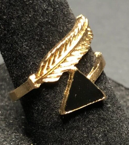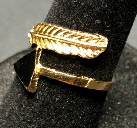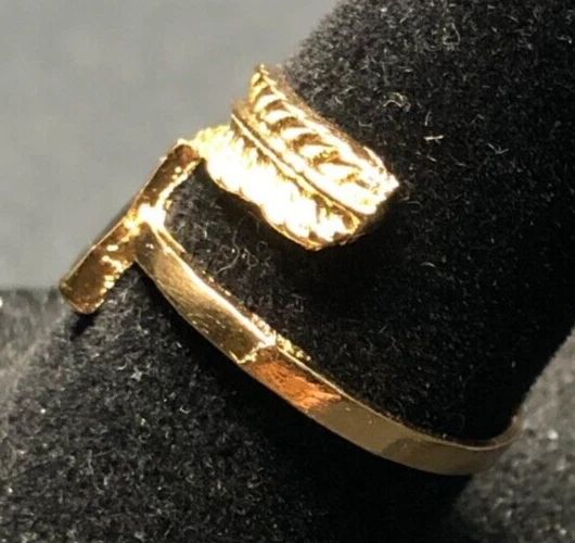 Vintage Antique Gold Tone Leaf & Arrow Ring - Size 7