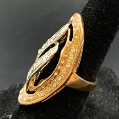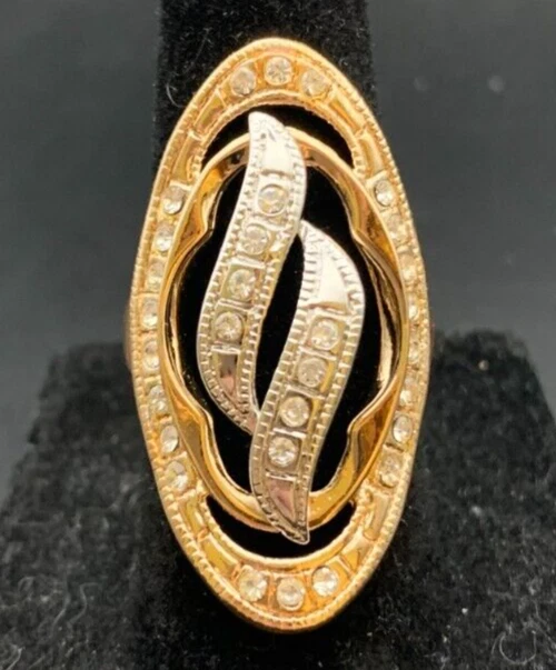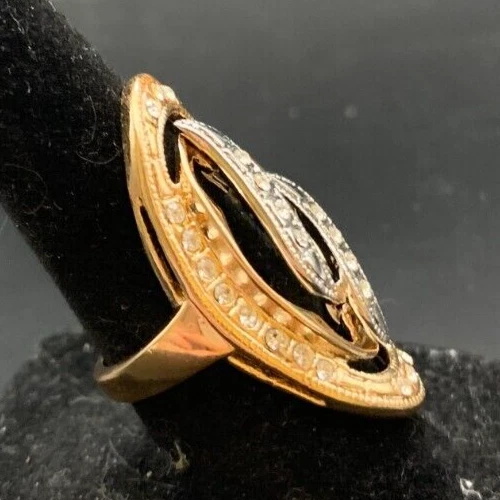 Vintage Antique Gold Tone Rhinestone CZ Cocktail Ring - Size 6
