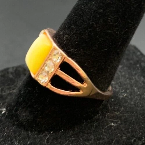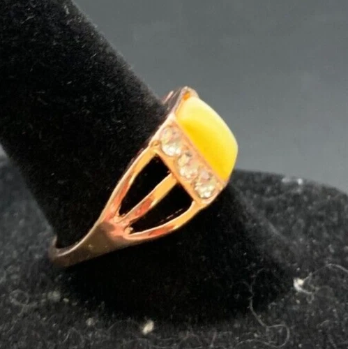 Vintage Antique Gold Tone Rhinestone CZ Cocktail Ring - Size 8