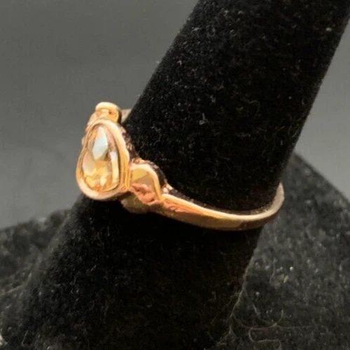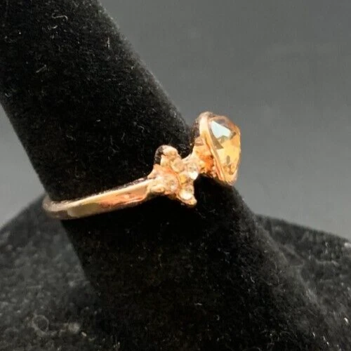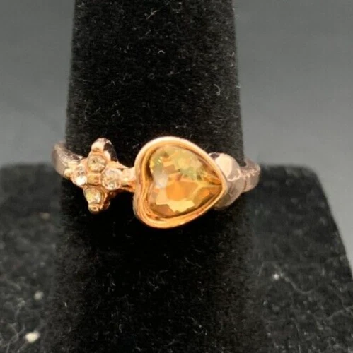 Vintage Antique Gold Tone Rhinestone CZ Heart Ring - Size 6