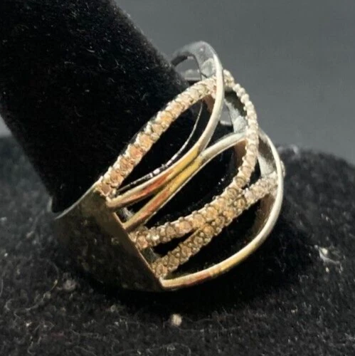 Vintage Antique Gold Tone Rhinestone CZ Ring - Size 10