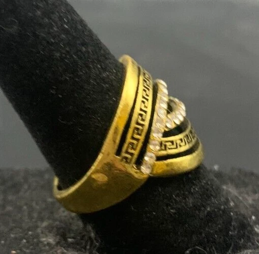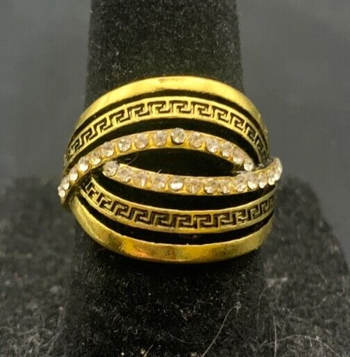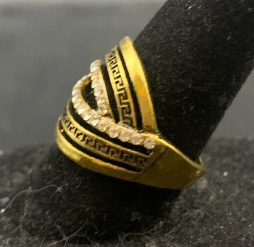 Vintage Antique Gold Tone Rhinestone Cocktail Ring - Size 7