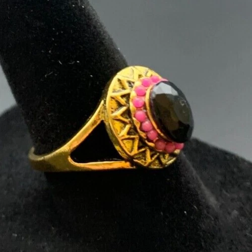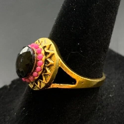 Antique: Yes Main Stone Depth: Unknown Secondary Stone: No Stone Gemstone Clarity Grade: Unknown Sizable: No UPC: Does not apply Type: Ring Main Stone Color: Black Country of Origin: Unknown Occasion: Anniversary, Birthday, Christmas, Father's Day, Graduation Signed: No Material: Rhinestone, Unknown Ring Size: 7 Main Stone Length: Unknown gtin13: Does not apply Number of Gemstones: Unknown Features: Engraved, Nickel-Free Seller Warranty: No Color: Gold Handmade: No Metal Purity: Unknown Shape: Asymmetrical Main Stone Width: Unknown Band Width: Unknown Main Stone Shape: Brilliant Cut Main Stone: Crystal Modified Item: No Metal: Stainless Steel Style: Band, Cocktail Vintage: Yes Customized: No Wholesale: No Brand: Unbranded Setting Style: Solitaire Personalize: No Main Stone Creation: Unknown Era: Undated Cut Grade: Excellent Country/Region of Manufacture: China Theme: Biker Base Metal: Stainless Steel