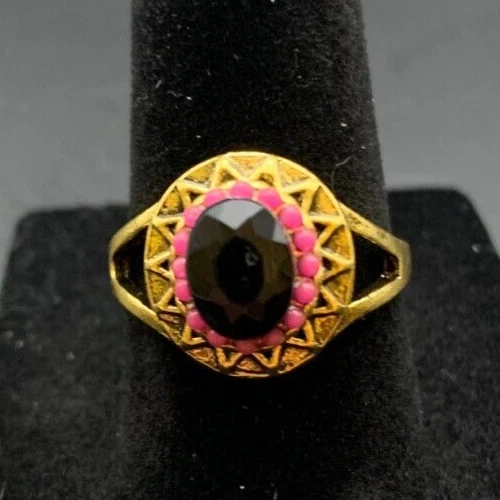 Vintage Antique Gold Tone Rhinestone Cocktail Ring - Size 7