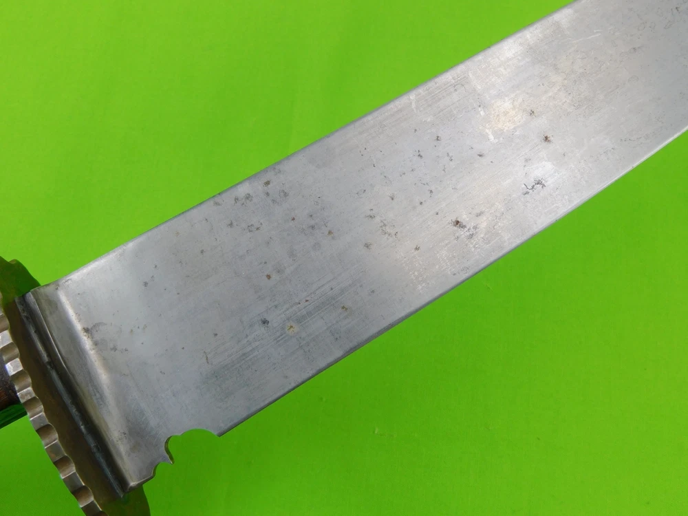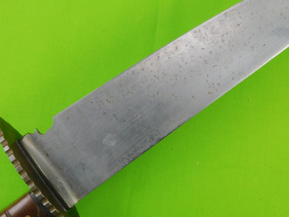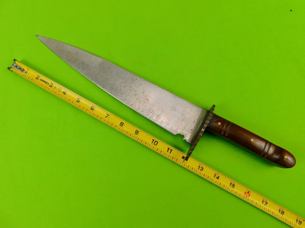 Vintage Antique Old US Custom Made Handmade Large Bowie Knife Vintage Antique Old US Custom Made Handmade Large Bowie Knife Vintage US Custom Made Large Bowie Knife No sheath The knife is solid, with no loose parts Size: 17 1/4" total length, the blade is 12 1/8" SORRY, NO SHIPPING TO GERMANY AT THIS TIME Listing and template services provided by inkFrog