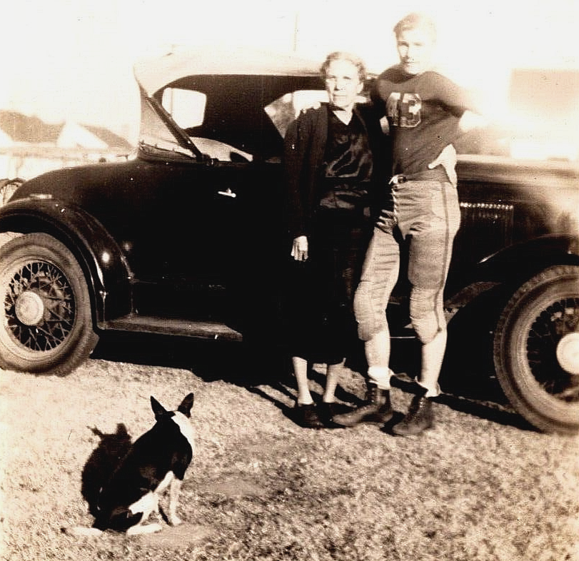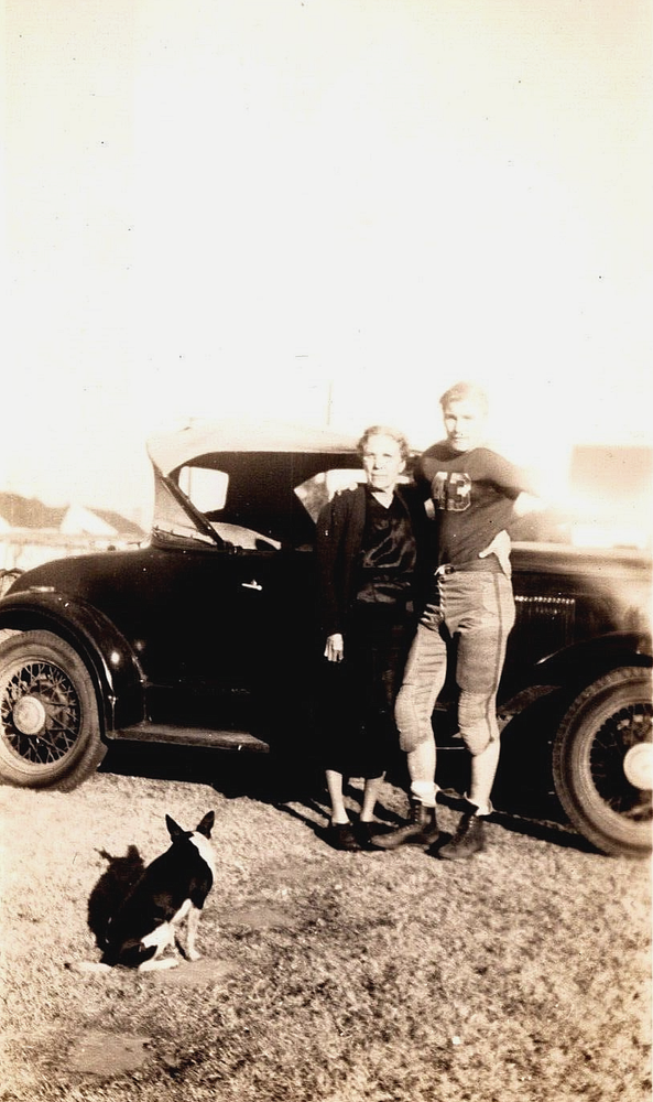 Vintage Antique Photo of Car Football Player Boy Lady Woman Puppy Dog