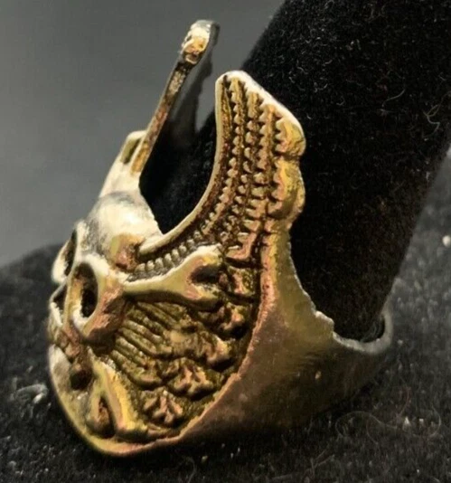 Country of Origin: Unknown Theme: Biker Sizable: No UPC: Does not apply Era: Undated Metal: Stainless Steel Metal Purity: Unknown Main Stone: Unknown Main Stone Depth: Unknown Style: Band, Cocktail Occasion: Anniversary, Birthday, Christmas, Father's Day, Graduation Secondary Stone: No Stone Band Width: Unknown Shape: Asymmetrical Setting Style: Solitaire Main Stone Color: Unknown gtin13: Does not apply Main Stone Width: Unknown Seller Warranty: No Personalize: No Wholesale: No Type: Ring Color: Silver Country/Region of Manufacture: China Antique: Yes Gemstone Clarity Grade: Unknown Base Metal: Stainless Steel Vintage: Yes Main Stone Creation: Unknown Brand: Unbranded Handmade: No Modified Item: No Number of Gemstones: Unknown Material: Unknown Main Stone Length: Unknown Signed: No Ring Size: 11 Cut Grade: Excellent Main Stone Shape: Brilliant Cut Customized: No Features: Engraved, Nickel-Free