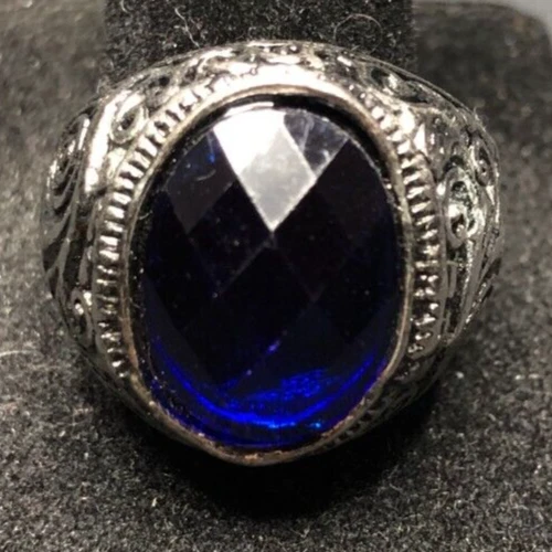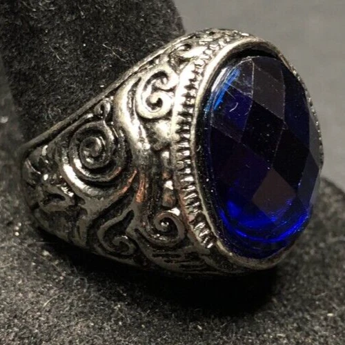 Antique: Yes Type: Ring Band Width: Unknown Color: Silver Main Stone Color: Blue Number of Gemstones: Unknown UPC: Does not apply Main Stone Shape: Brilliant Cut Main Stone Length: Unknown Style: Band Vintage: Yes Signed: No Main Stone Width: Unknown Occasion: Anniversary, Birthday, Christmas, Father's Day, Graduation Main Stone Creation: Unknown Country/Region of Manufacture: China Country of Origin: Unknown Cut Grade: Excellent Theme: Biker Shape: Asymmetrical Handmade: No Main Stone Depth: Unknown Gemstone Clarity Grade: Unknown Wholesale: No Sizable: No Metal Purity: Unknown Material: Rhinestone, Unknown Setting Style: Solitaire Metal: Stainless Steel Brand: Unbranded Era: Undated Secondary Stone: No Stone Ring Size: 10 Customized: No gtin13: Does not apply Personalize: No Main Stone: Crystal Features: Engraved, Nickel-Free Seller Warranty: No Modified Item: No Base Metal: Stainless Steel