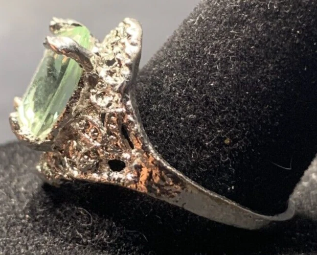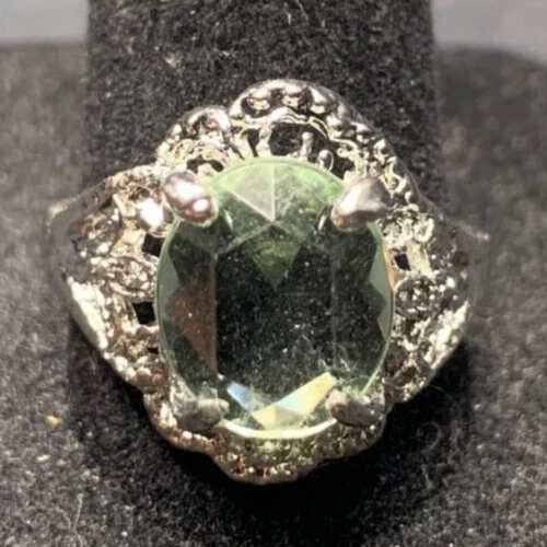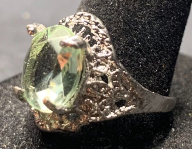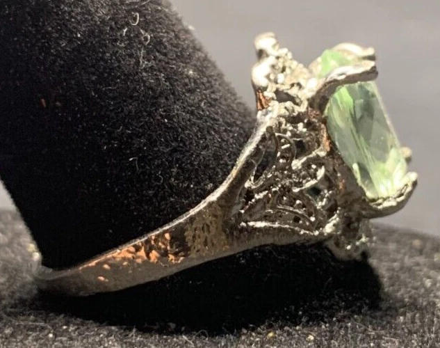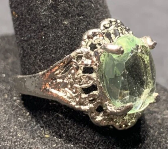 Vintage Antique Silver Tone Green Rhinestone Ring - Size 9
