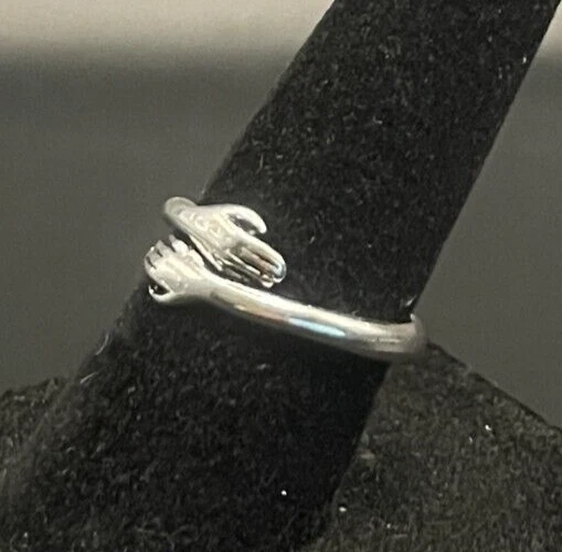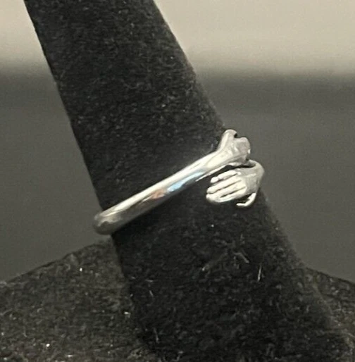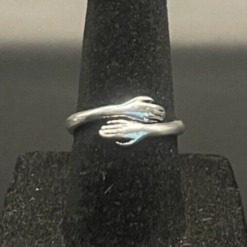 Vintage Antique Silver Tone Hands Hug Ring - Size 6
