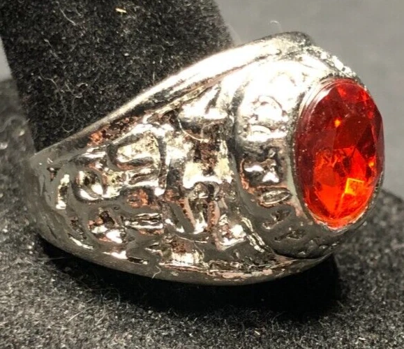 Gemstone Clarity Grade: Unknown Main Stone Length: Unknown Era: Undated gtin13: Does not apply Main Stone Depth: Unknown Main Stone Color: Orange Personalize: No Setting Style: Solitaire Color: Silver Base Metal: Stainless Steel Band Width: Unknown Features: Engraved, Nickel-Free Main Stone Creation: Unknown Customized: No Vintage: Yes Main Stone: Crystal Brand: Unbranded Modified Item: No Number of Gemstones: Unknown UPC: Does not apply Antique: Yes Country of Origin: Unknown Signed: No Sizable: No Main Stone Width: Unknown Seller Warranty: No Main Stone Shape: Brilliant Cut Country/Region of Manufacture: China Occasion: Anniversary, Birthday, Christmas, Father's Day, Graduation Handmade: No Material: Rhinestone, Unknown Shape: Asymmetrical Metal Purity: Unknown Cut Grade: Excellent Theme: Biker Metal: Stainless Steel Type: Ring Wholesale: No Style: Band Ring Size: 11 Secondary Stone: No Stone