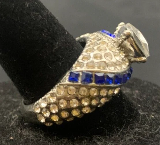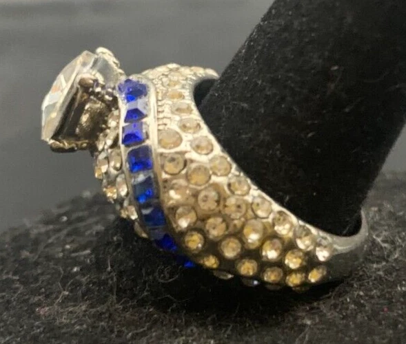 Vintage Antique Silver Tone Rhinestone CZ Cocktail Ring - Size 9
