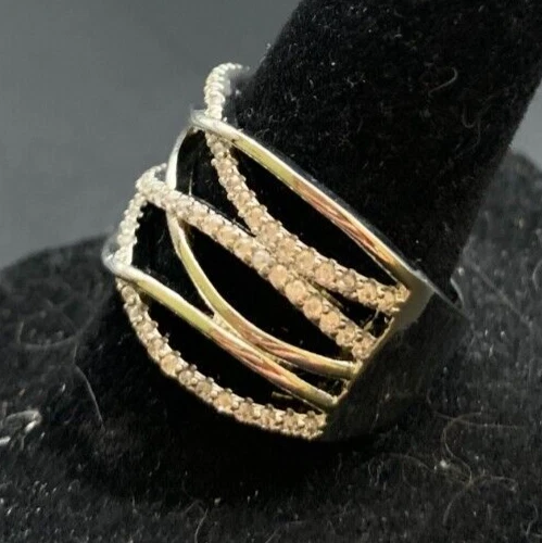 Vintage Antique Silver Tone Rhinestone CZ Ring - Size 9