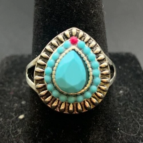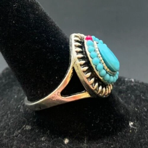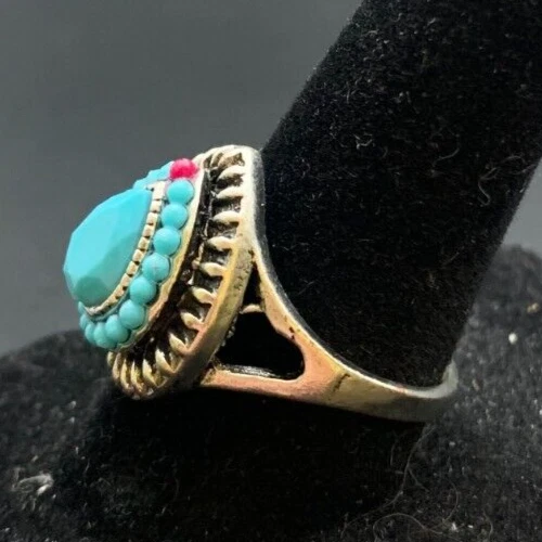 Vintage Antique Silver Tone Rhinestone Cocktail Ring - Size 7