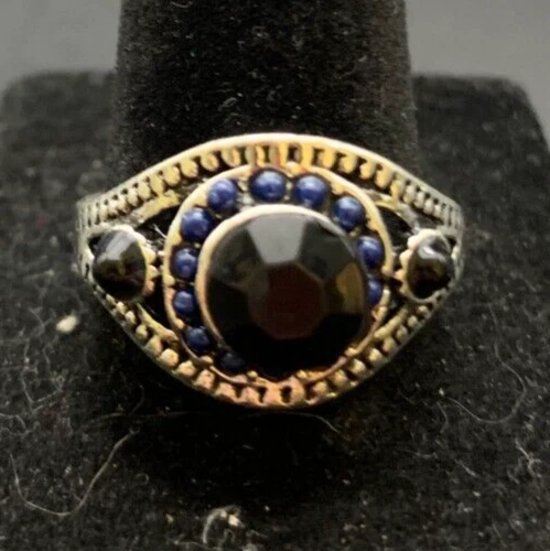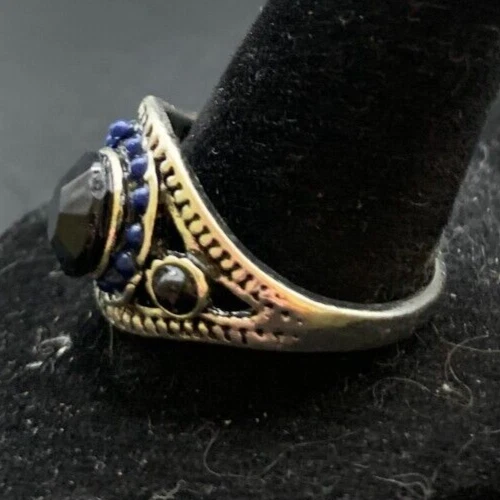 Vintage Antique Silver Tone Rhinestone Cocktail Ring - Size 9.5