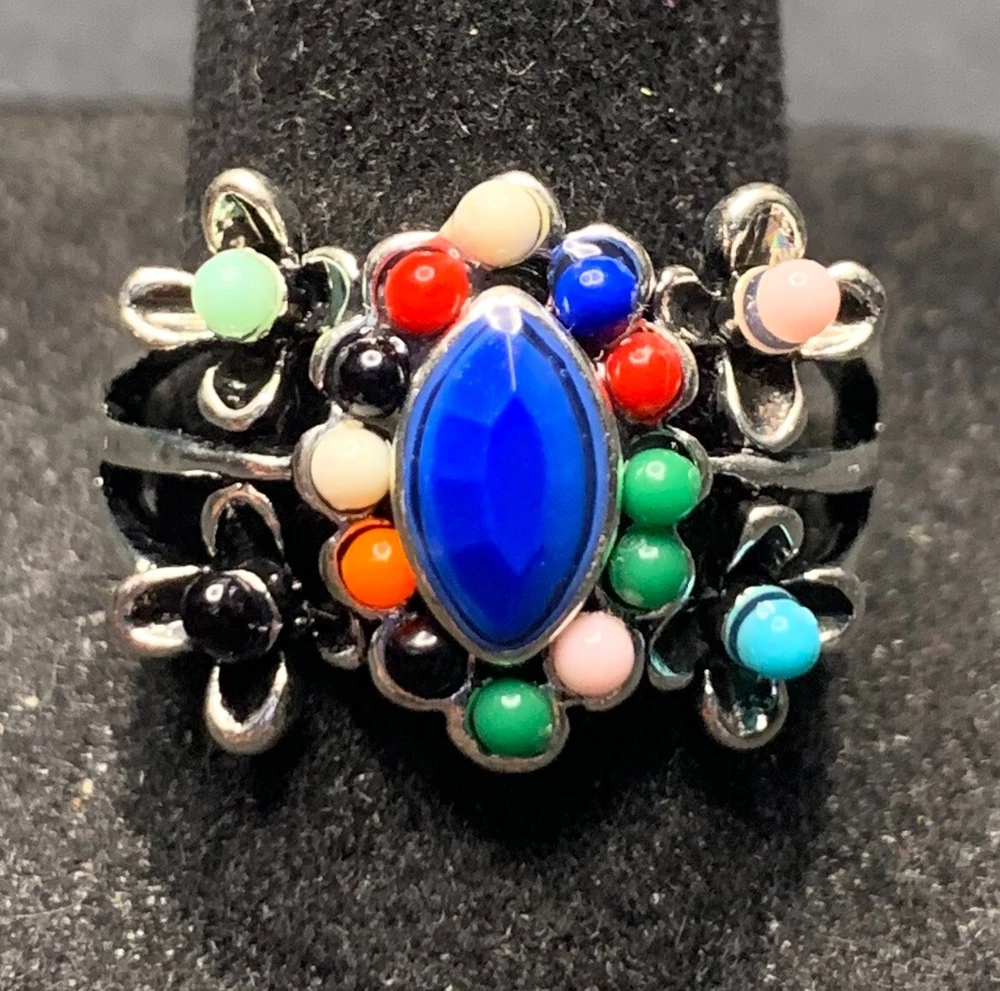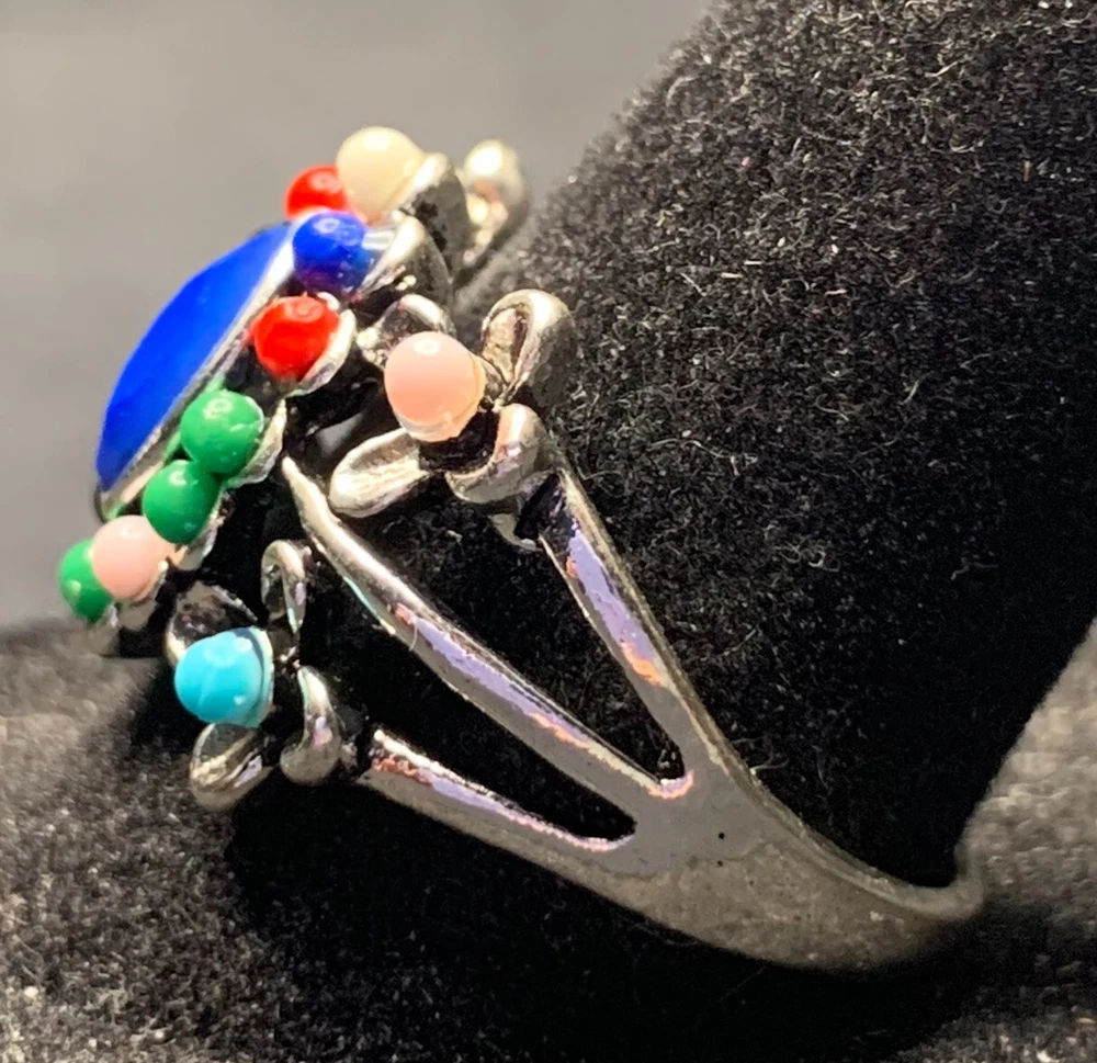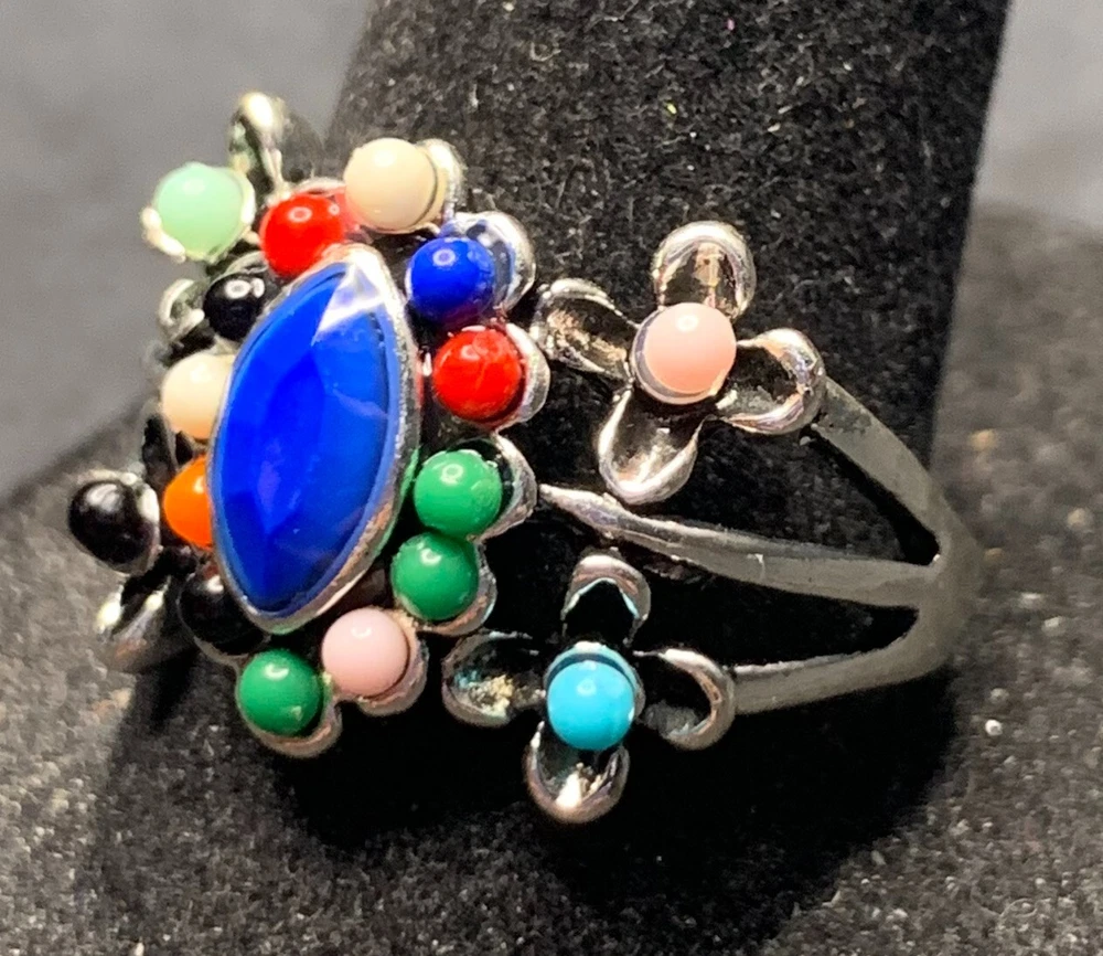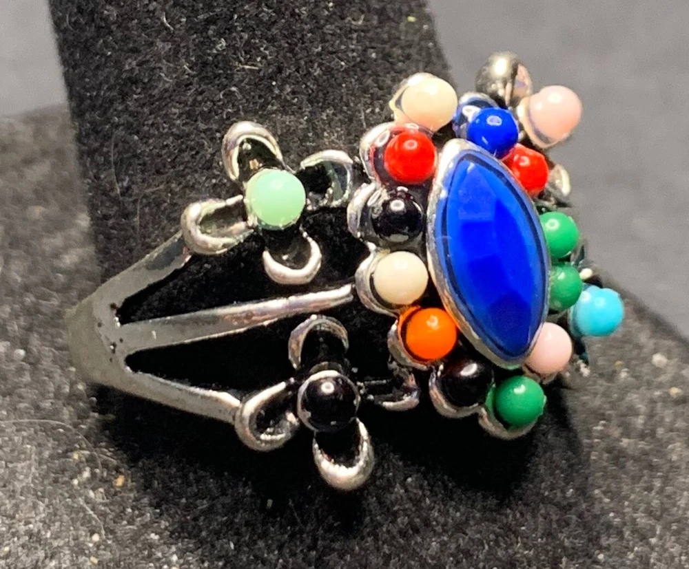 Vintage Antique Silver Tone Rhinestone Cocktail Ring - Size 9