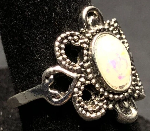 Vintage Antique Silver Tone Rhinestone Southwestern Ring - Size 7.5