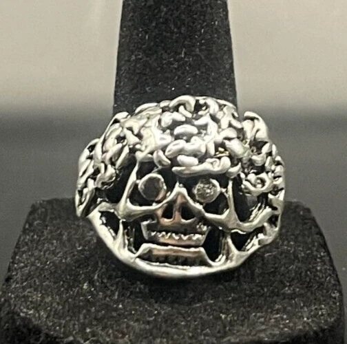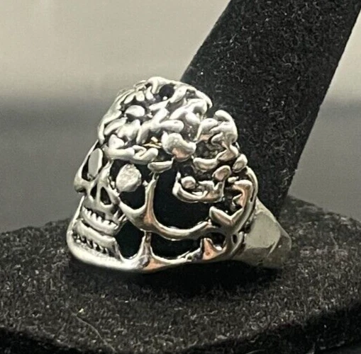 Vintage Antique Silver Tone Skull Ring - Size 10.5