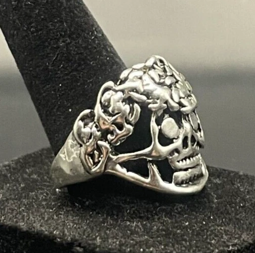 Customized: No Gemstone Clarity Grade: Unknown Handmade: No Country of Origin: Unknown Setting Style: Solitaire Main Stone Shape: Brilliant Cut Metal: Stainless Steel Main Stone Length: Unknown Features: Engraved, Nickel-Free Wholesale: No Main Stone: Unknown Main Stone Creation: Unknown Personalize: No Main Stone Width: Unknown Modified Item: No Band Width: Unknown Brand: Unbranded Metal Purity: Unknown Color: Silver Material: Unknown Secondary Stone: No Stone Ring Size: 10.5 Vintage: Yes Signed: No Main Stone Color: Unknown gtin13: Does not apply UPC: Does not apply Shape: Asymmetrical Style: Band, Cocktail Number of Gemstones: Unknown Antique: Yes Cut Grade: Excellent Seller Warranty: No Country/Region of Manufacture: China Main Stone Depth: Unknown Base Metal: Stainless Steel Occasion: Anniversary, Birthday, Christmas, Father's Day, Graduation Sizable: No Type: Ring Theme: Biker Era: Undated