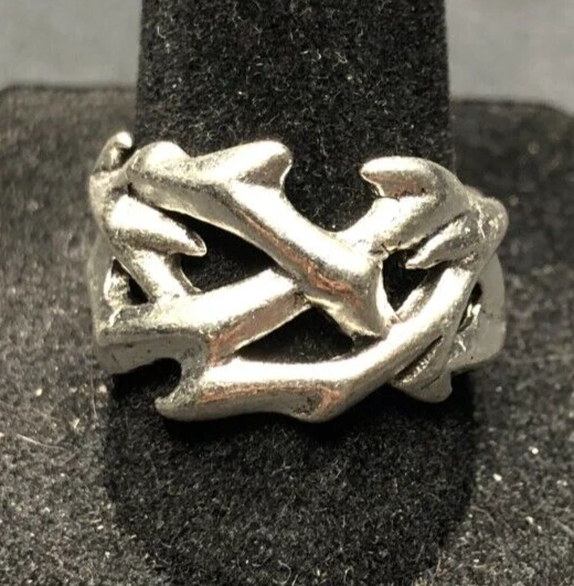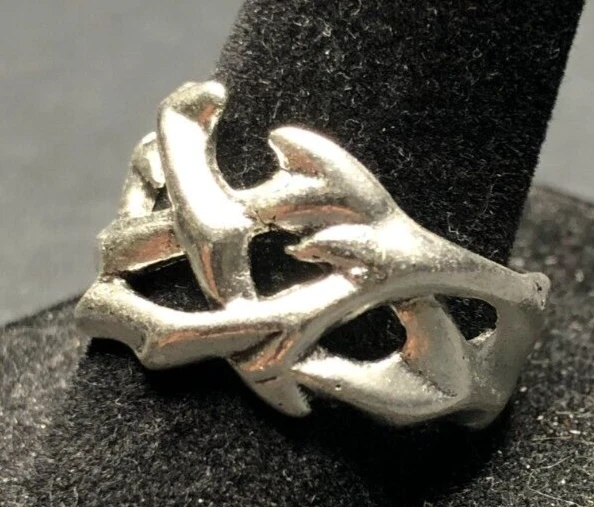 Vintage Antique Silver Tone Tribal Ring - Size 8