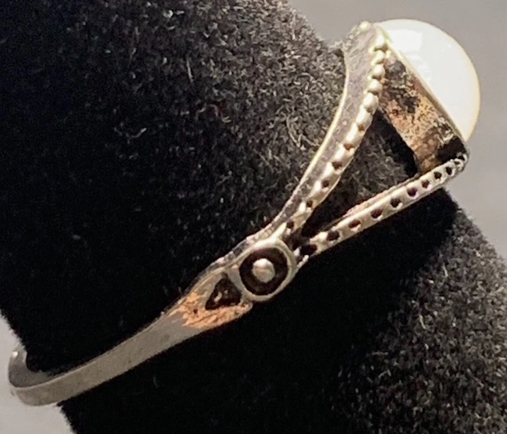 Vintage Antique Silver Tone White Rhinestone Ring - Size 6