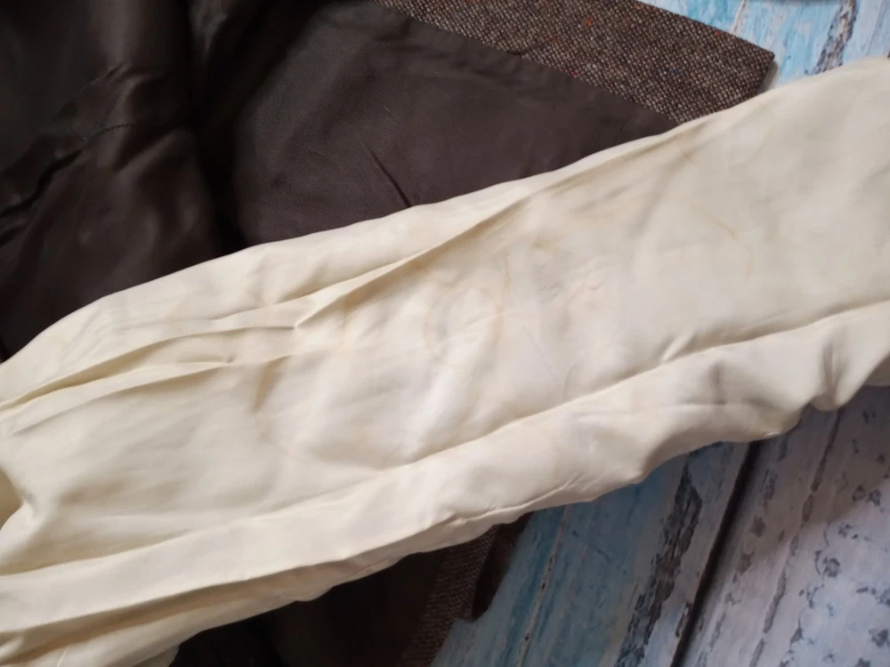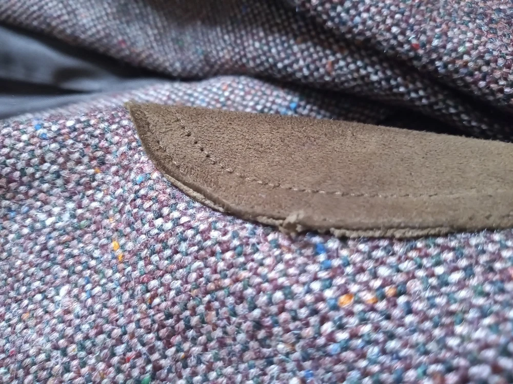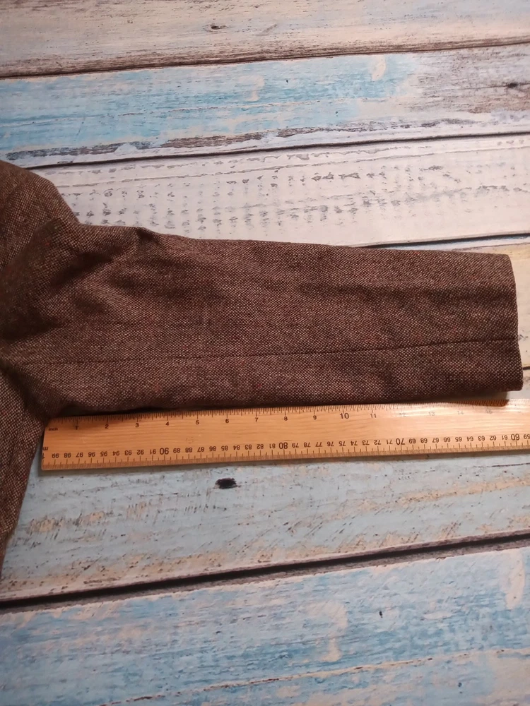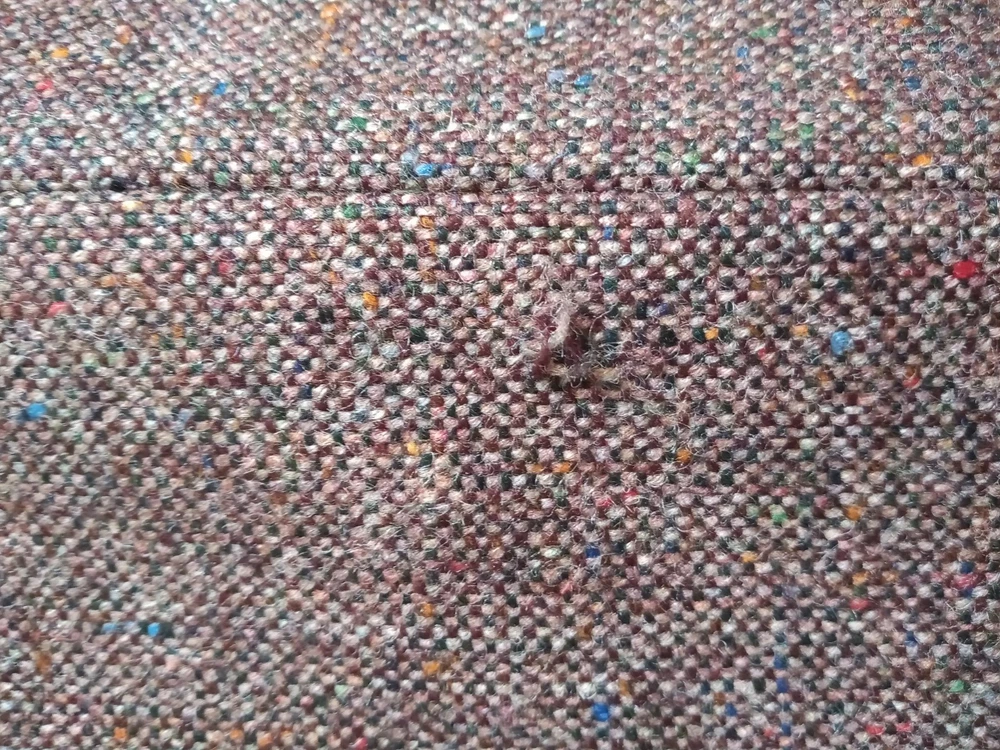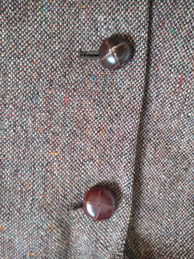 Aquascutum Irish Tweed Blazer 100% Pure New Wool Size 40R Made in England Classic British tailoring with suede elbow patches, Royal Warrant prestige & richly flecked Irish tweed A beautifully made Aquascutum blazer in rich brown Irish tweed, crafted from 100% pure new wool. The brown features a multicoloured flecked weave — with hints of red, blue, green — giving it depth and character. Includes suede elbow patches, and a Royal Warrant label issued by appointment to H.M. Queen Elizabeth The Queen Mother. Ideal for autumn/winter layering, heritage styling, or vintage collectors. Item Details: Brand: Aquascutum, Regent Street London Size: 40 Regular (40R) Item Details: Brand: Aquascutum, Regent Street London Size: 40 Regular (40R) Fabric: Outer: 100% pure new wool — traditional Irish tweed with multicoloured flecks Lining: 100% viscose Colour: Brown with red, blue, green flecks Features: Suede elbow patches (both sleeves) Two-button front (note: buttons do not match) Two front flap pockets Three inner pockets Buttoned cuffs Double rear vents for ease of movement Fully lined interior Royal Warrant label Measurements (taken flat) approx : Pit to pit: approx. 20.5 inches (52 cm) Length (shoulder to hem): approx. 30.5 inches (77.5 cm) Sleeve (pit to cuff) : just over 16 inches (approx. 41 cm) Sleeves are slightly shorter than modern standard — best suited to a tailored fit or layering over slim knits. Condition: Outer: Good vintage condition : Two small holes Non-matching front buttons Light fraying to the edge of one suede elbow patch Light marks to the other patch Lining: Cream viscose lining in the arms shows visible staining and age-related wear. Please see all photos as they form part of the description