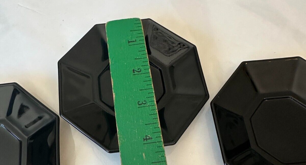 Enhance your dinnerware collection with these elegant Arcoroc Dishes from France. The six-piece set features an octagonal shape with eight sides, each adorned with a unique pattern. The black pressed glass material adds a touch of sophistication to any occasion, whether it's a formal dinner or a casual gathering. Crafted with care, these butter pats are an original production style from France and boast an impressive backstamp. The glossy finish and geometric shape make them a perfect addition to any plate, while the antique design adds a touch of nostalgia. Ideal for all occasions, these Arcoroc Dishes are a must-have for any glassware enthusiast. Vintage Pre-owned Great Condition-No Chips or Cracks-Pictures are part of the description. Please view all pictures and contact me if you have questions. Visit my Store for other Great Finds and when you find multiple items you desire to purchase, I will combine your shipments (if possible) to save you money. Thank you for Your Business,