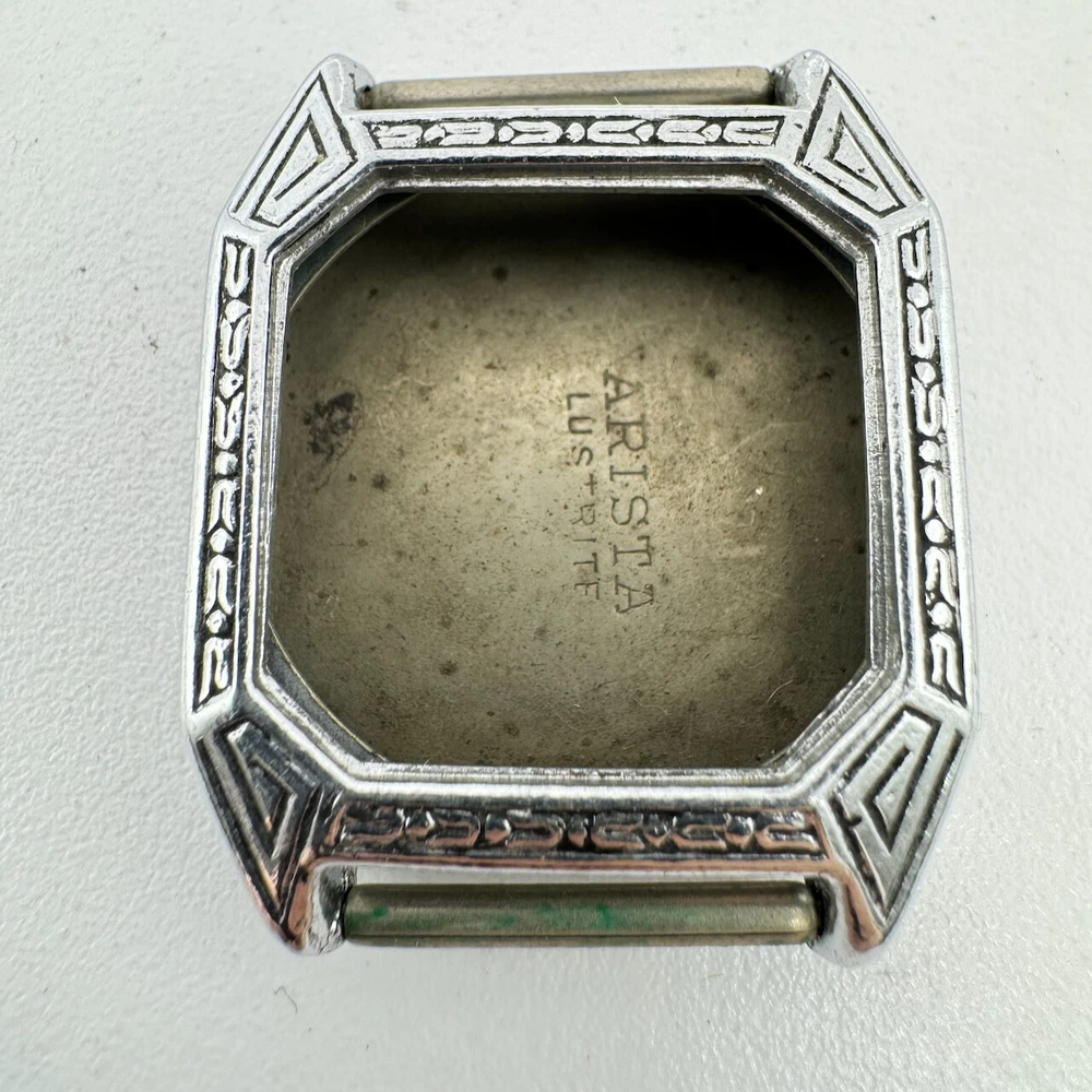 Vintage Arista Art Deco Engraved Style Men's Wristwatch Case Chrome Plated Product Description Item: Wristwatch Case Brand: Arista Model: Art Deco Engraved Style Case Material: Chrome Plated Gender: Men's Product Measurements Lug Width: 16.5mm Tip to Tip of Lugs: 33mm Product Condition Ok, overall condition for its age. There are scratches on the case. It is missing the crystal.