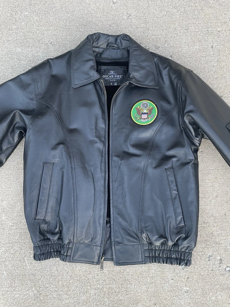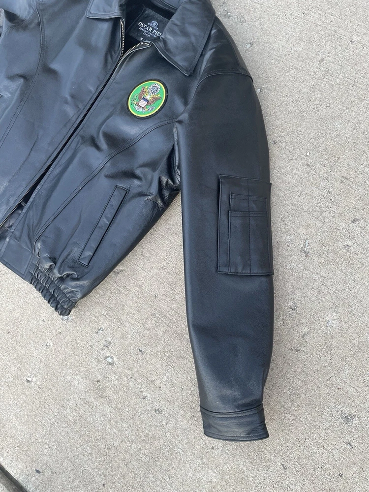 Vintage Army Military Leather Jacket Oscar Piel Men’s Size Small