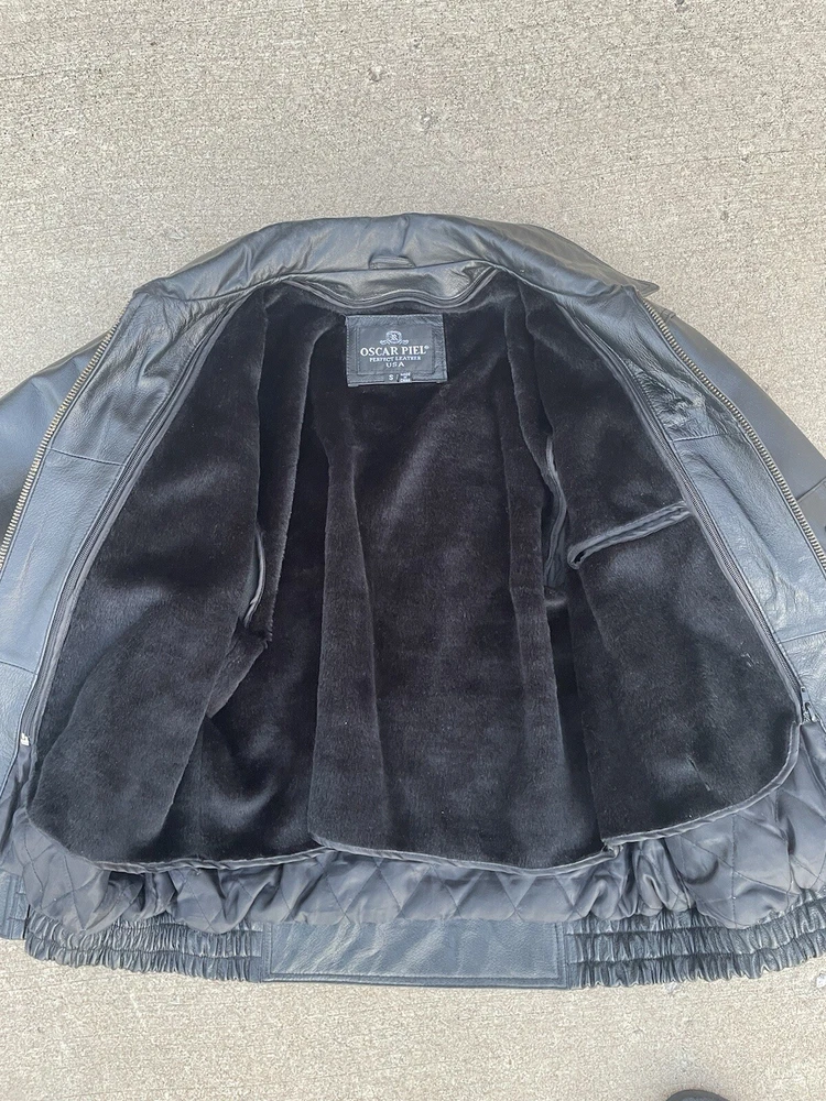 Color: Black Outer Shell Material: Leather Theme: Army Size: S Brand: Oscar Piel Type: Jacket Department: Men Size Type: Regular Style: Military Jacket