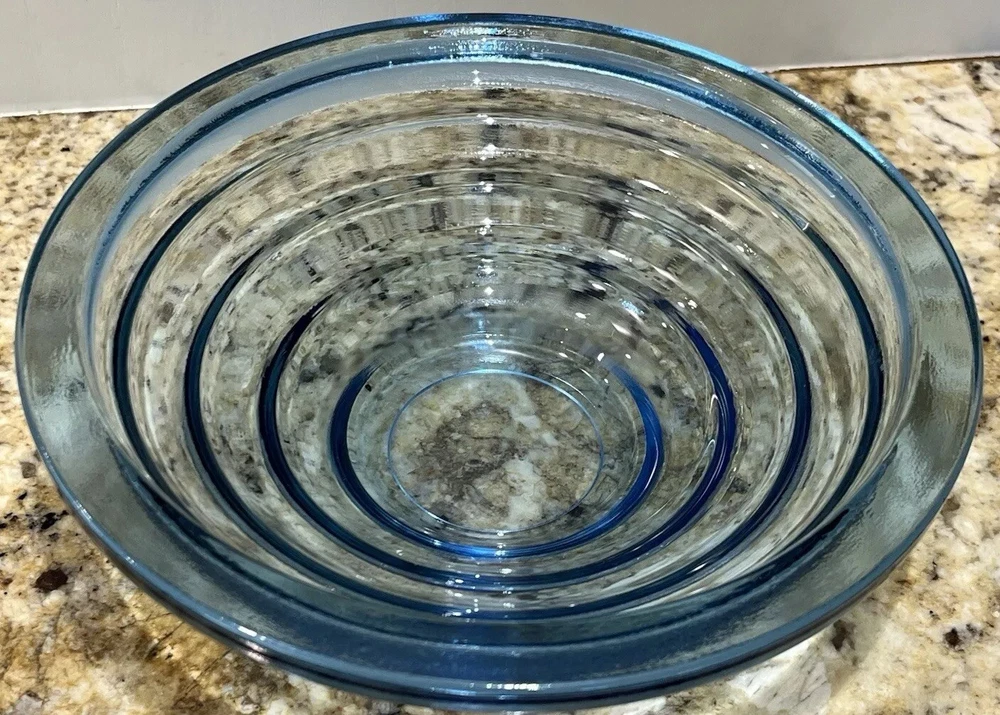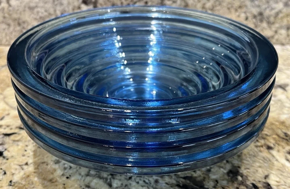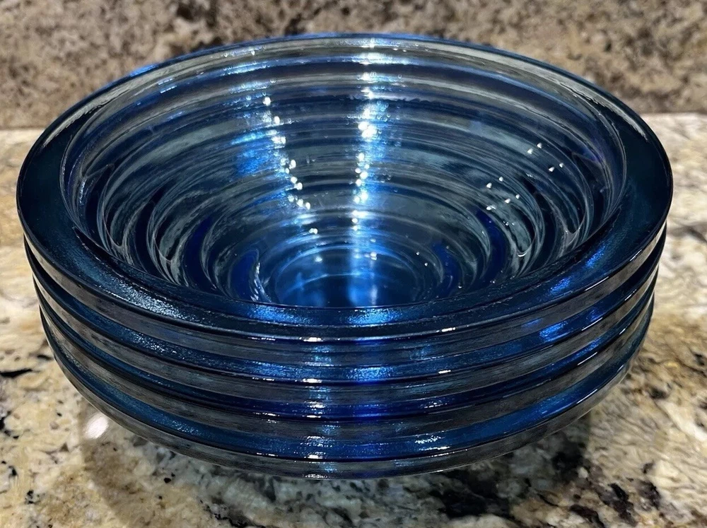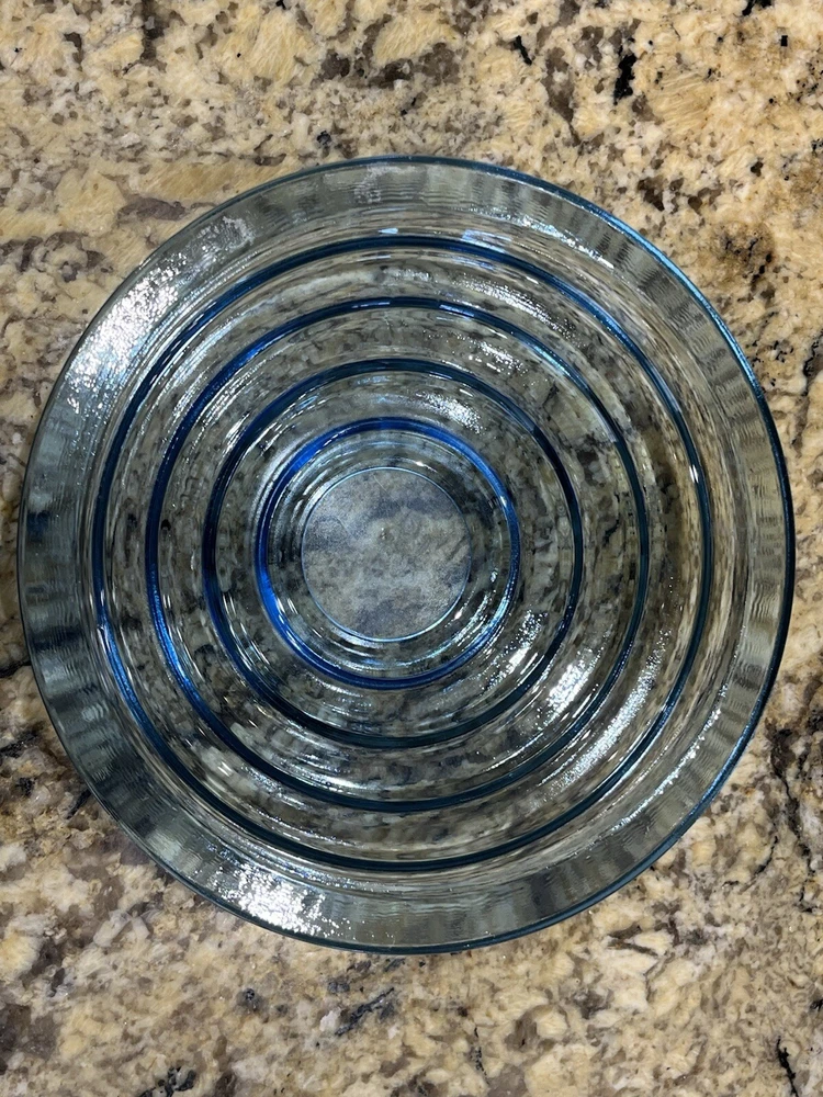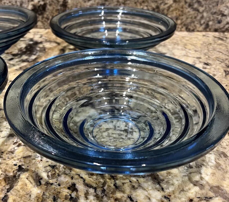 Handsome set of 4 vintage art deco bowls made of thick glass 💙☺️ Measure: 2.0626” tall 7.1876” rim diameter 2” base diameter