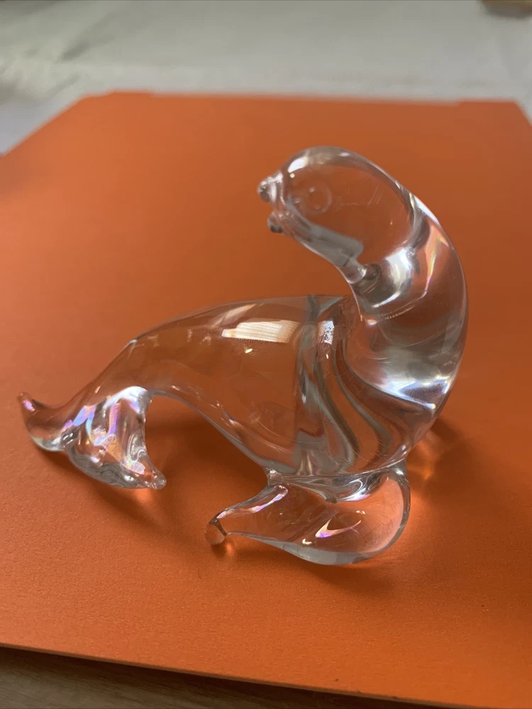 HomeVintage Art Glass Seal Sea Lion Paperweight Figurine Clear Animal Sculpture