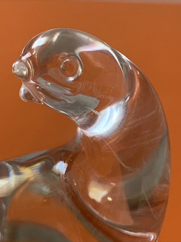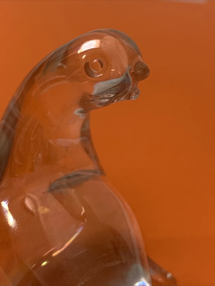Vintage Art Glass Seal Sea Lion Paperweight Figurine Clear Animal Sculpture