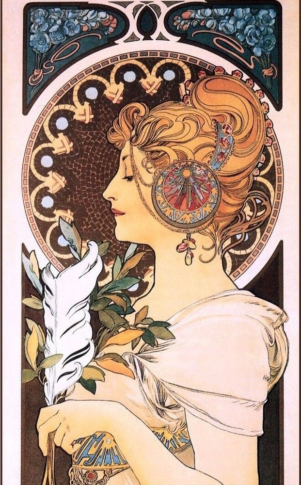 Quill 1809 Alphonse Mucha Art Nouveau Series Vintage Poster Print Retro Style Restored Art ***We offer Free US Postage or Reduced Postage for Canada & Worldwide. **No charges for additional prints worldwide. ***These are not framed or stretched or mounted NOTE:**Delivery dates shown are only "Suggested" Order Early To Avoid Post Delay Dramas **Read Please: The print looks best with a nice mat (passe - partout or passepartout ) and frame. These prints are the exact proportion as the original and will not be stretched to fit the paper or canvas...this would cause a distorted print The image will be the exact aspect ratio as per the original poster, so there might be more white on the top and bottom, or side to side. Options available..use the drop-down menu * Watermark will not be on your image. *Cloth Canvas an artist canvas used also in museums and art galleries *Photo Gloss Paper is a high-quality Professional Photo paper *Matte Photo Paper is a great solution if you do not want a Gloss, this paper is great with colors *Luster Photo Paper this photo paper is neither glossy or matt. Glossy paper has a smooth texture, luster paper is slightly textured. This option is a good choice for something in between Metallic, Photo Gloss and Matte *Metallic Pearlescent Photo Paper is a very high-quality paper with a Pearlescent sheen, a glossy finish, and unique metallic appearance, these prints have extra visual interest and depth. This paper uses a combination of film laminate layers that produce striking, dimensional, lasting images on an ultra-bright background. The effect is sometimes described as "chrome on paper." This is NOT a metal plaque, it is a photo paper This poster print will be shipped in a sturdy container. We will ship usually within 24 business hours of payment, except for weekends or US Holidays If there is a question, please do contact me All is done to send you the best quality poster image. Don't forget to check out the Sales. There is a great Buy 3 Get 1 Free Offer!! Shipped with no extra postage..Worldwide! There are a variety of reasons why the images on your monitors don't match each other. The simplest is that each monitor is different; even monitors with the same model won't have colors that match up perfectly We are located and ship only from the USA The art is not AI generated, these are restored prints from originals