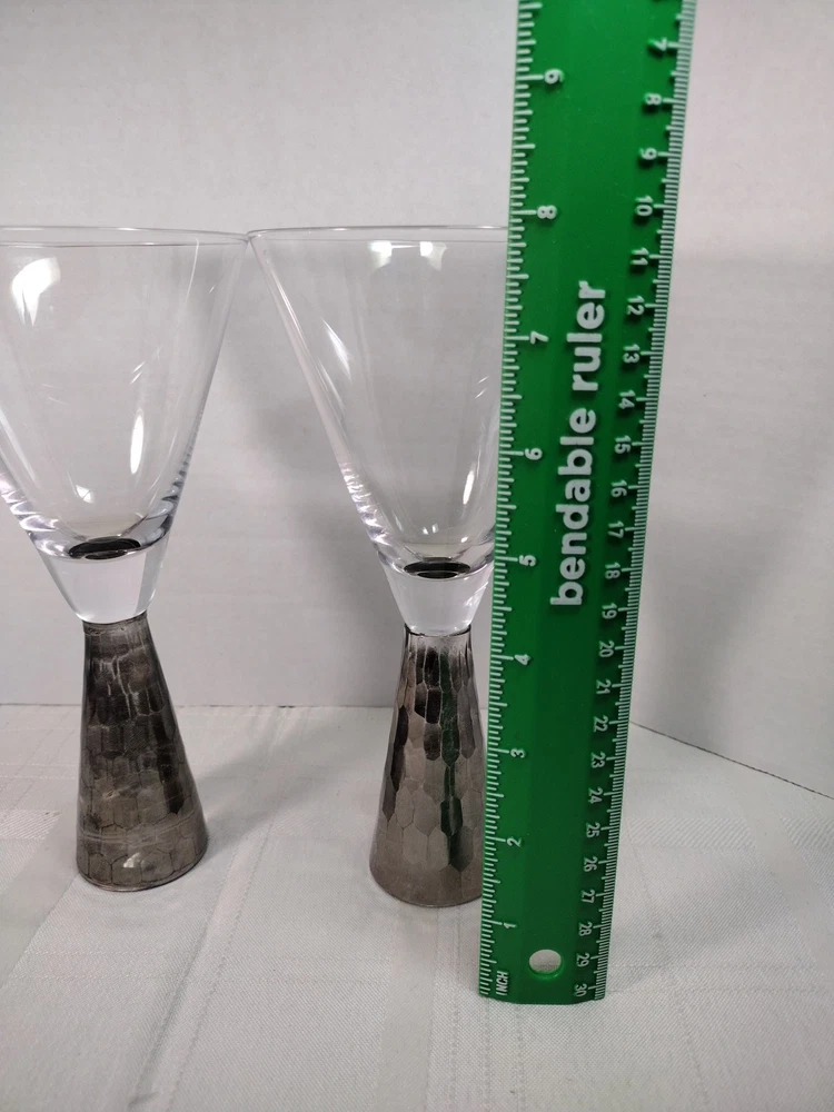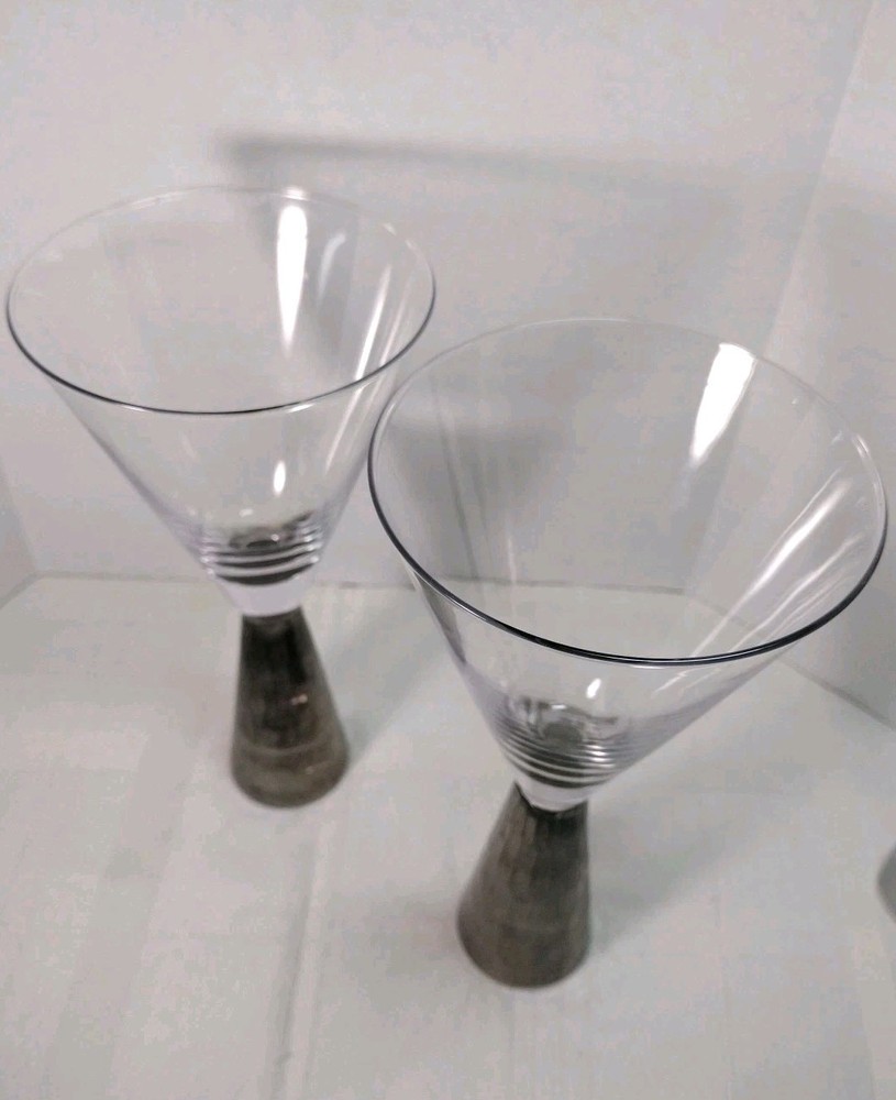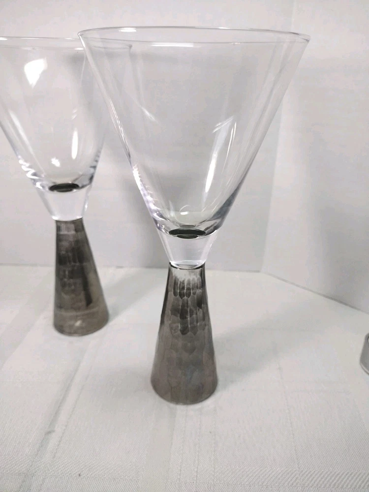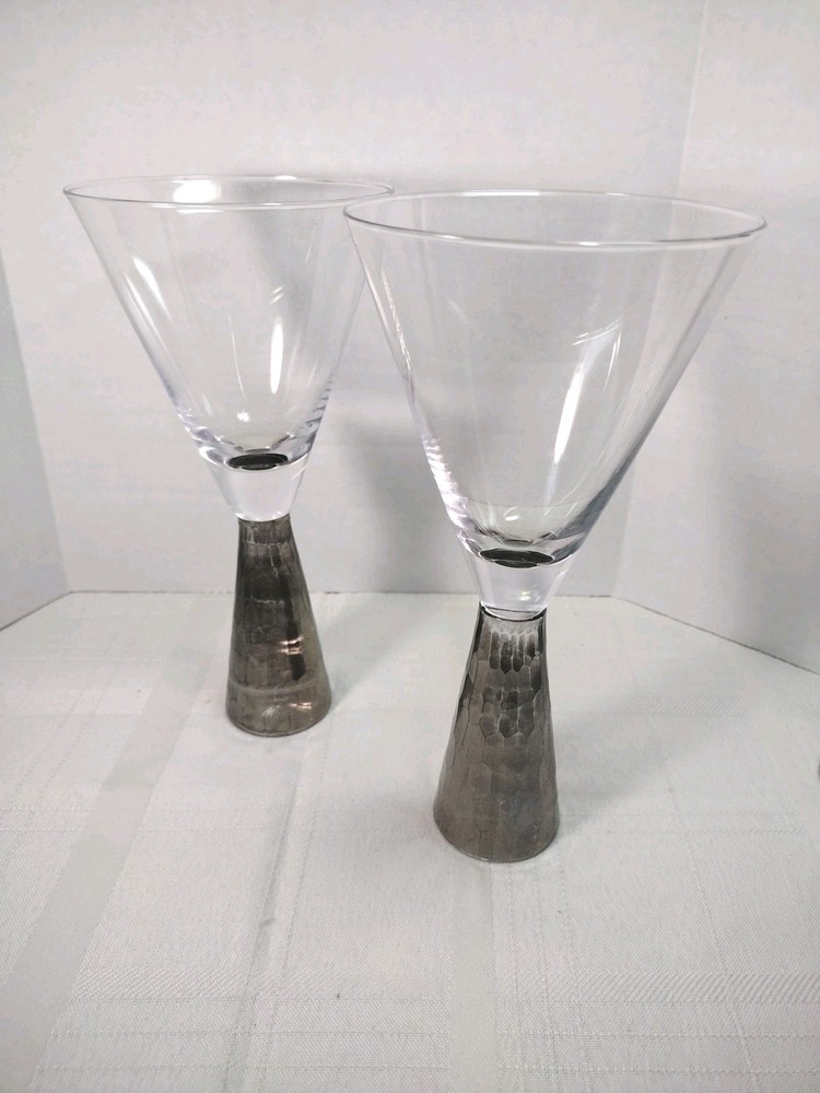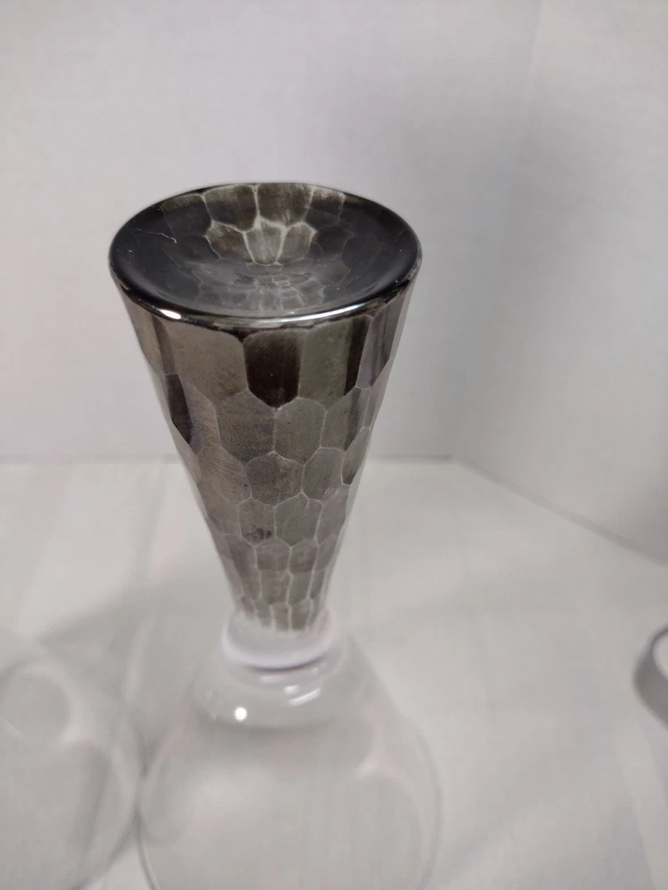 Nice artland Prescott hand blown wine or champagne glasses honeycomb stem silver on the bottom very nice and sturdy. No Chips No Cracks. Great condition