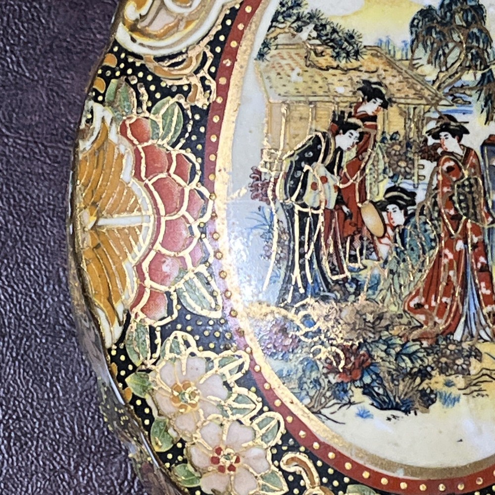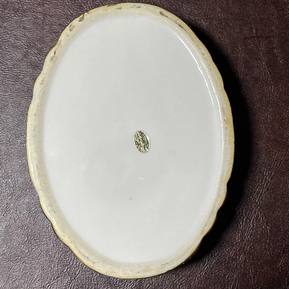 This vintage Asian ceramic jewelry box features a beautifully painted floral design with a Geisha motif, making it a charming decorative piece. The oval-shaped box with a lid provides storage for small trinkets and jewelry, perfect for all occasions. Made in China, this medium-sized trinket box showcases multicolor artwork in an Asian style, ideal for collectors and those who appreciate period styles.