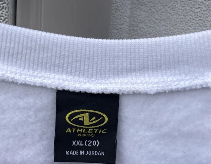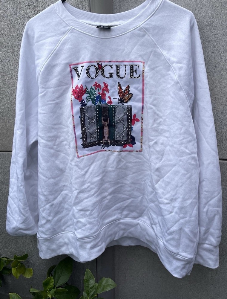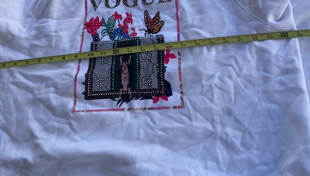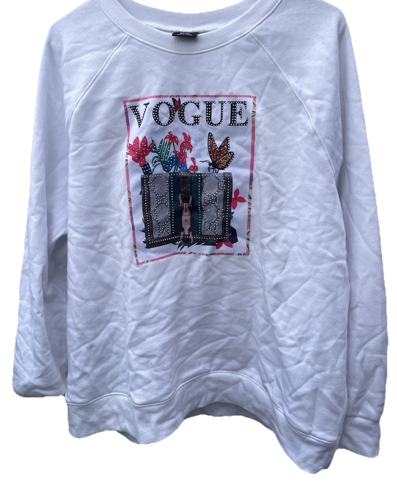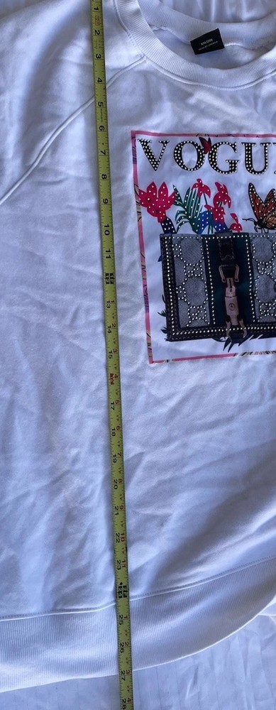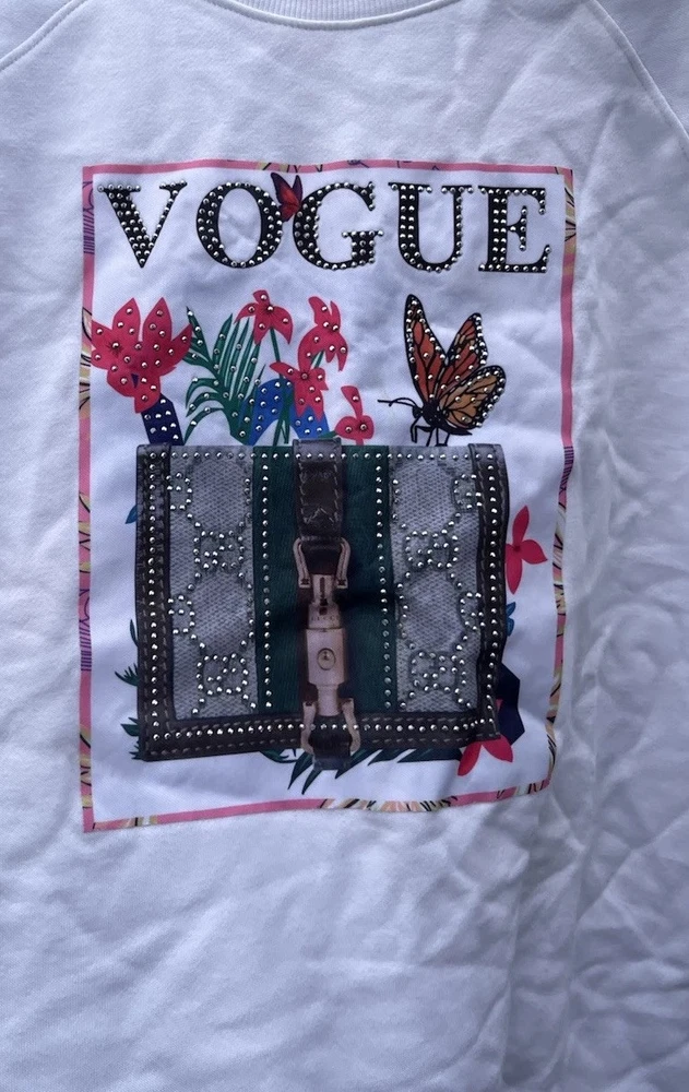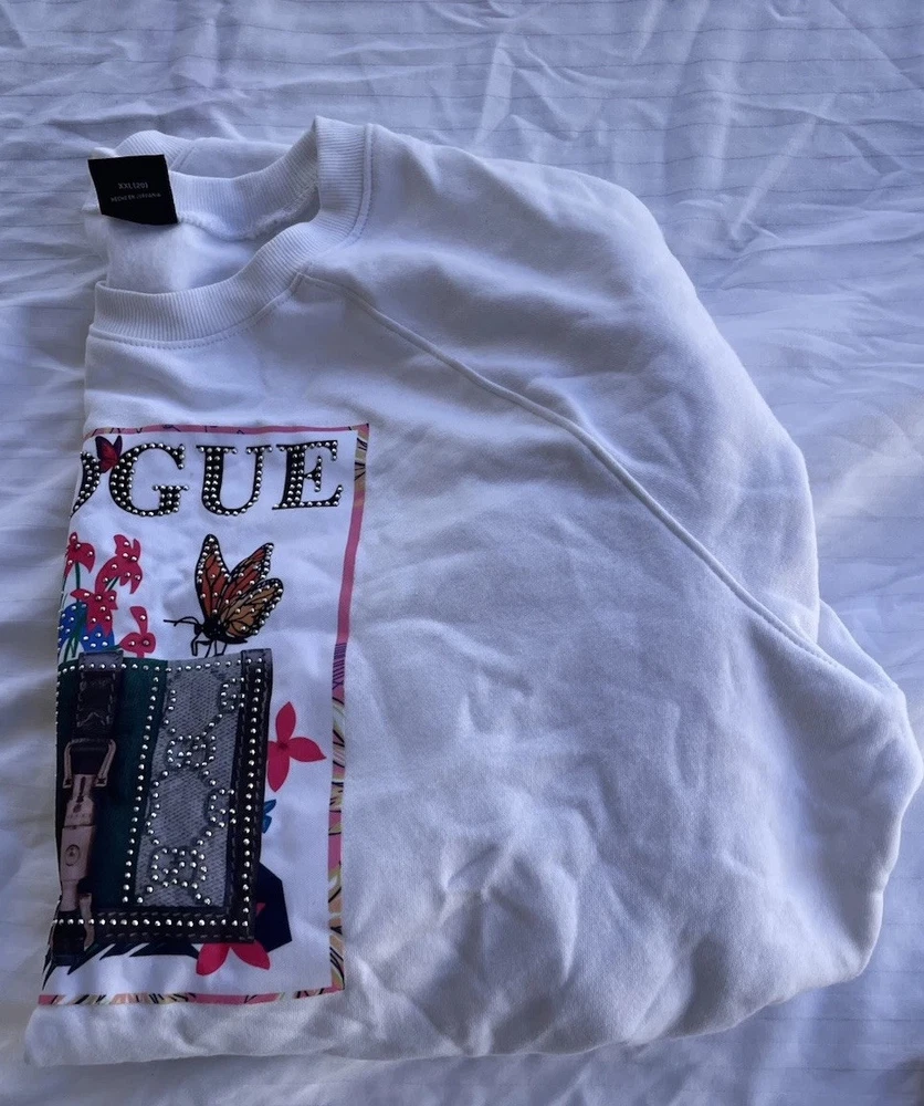 This Vintage Athletic Works Sweatshirt is a stylish and unique piece featuring designer stones and a Vogue theme, making it a standout addition to any wardrobe. The pullover design with a crew neck and long sleeves offers a cozy fit, perfect for casual wear or various occasions like parties, travel, or everyday activities. Made from a comfortable fleece fabric in a size 2XL, this 1980s sweatshirt in pink color with jewel, glitter, and studded accents exudes a retro charm that is both fashionable and eye-catching. Perfect for those who appreciate vintage fashion with a touch of luxury and sportswear influences.