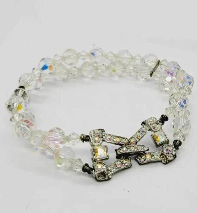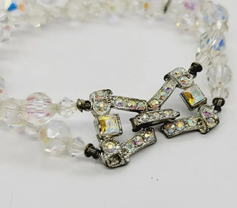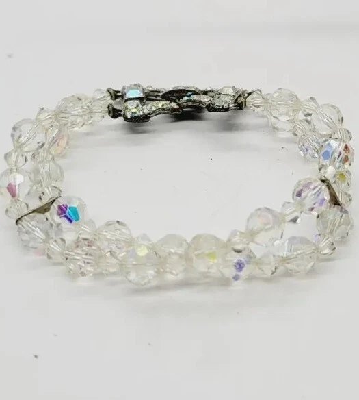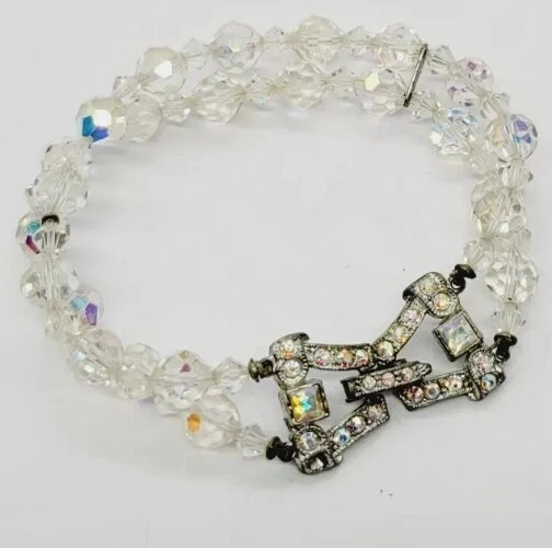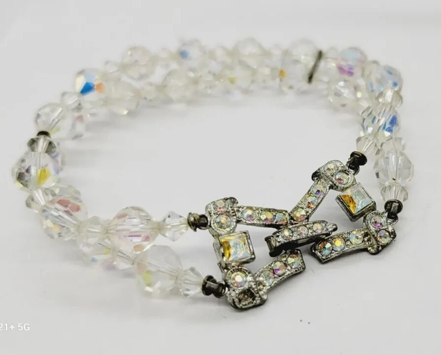 Vintage Aurora Borealis Crystal Layered Beaded Bracelet 2 Row