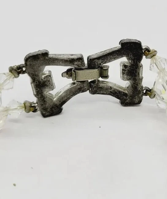 Antique Art Deco Czech Blue Vauxhall Mirror Glass Link Bracelet Vintage 7"