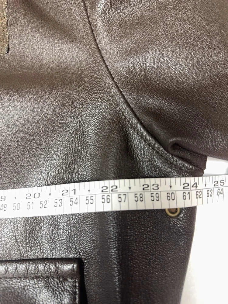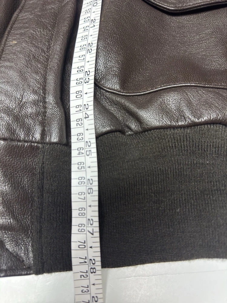 Item: Vintage Avirex A-2 Style Leather Flight Jacket Size: 48L (Men’s XL) Material: Genuine Goatskin Leather Made in USA This is a vintage Avirex USA leather bomber jacket, designed in the classic A-2 flight jacket style. Avirex was well-known for producing high-quality heritage and aviation-inspired leather jackets in the 1980s–2000s, and this is one of their premium goatskin models. Features: • High-quality genuine goatskin leather (supple, thick, excellent condition) • Warm brown cotton lining • Heavy-duty brass zipper (smooth operation) • Two front flap pockets • Ribbed knit cuffs & waistband • Avirex logo tag, size tag, and goatskin label • Handwritten name inside from the previous owner (adds character) • Classic A-2 bomber styling • Made in USA Condition: Leather is in excellent condition with no cracking, stains, or dryness. Lining is clean. Zipper works perfectly. Cuffs and waistband show light normal pilling only, with no holes or thinning. Overall a beautifully preserved vintage Avirex jacket. A great piece for collectors of vintage leather, Avirex fans, or anyone who appreciates a classic bomber-style jacket. Ships fast and securely.