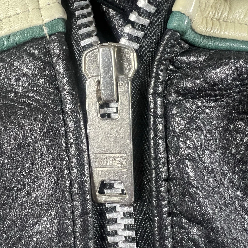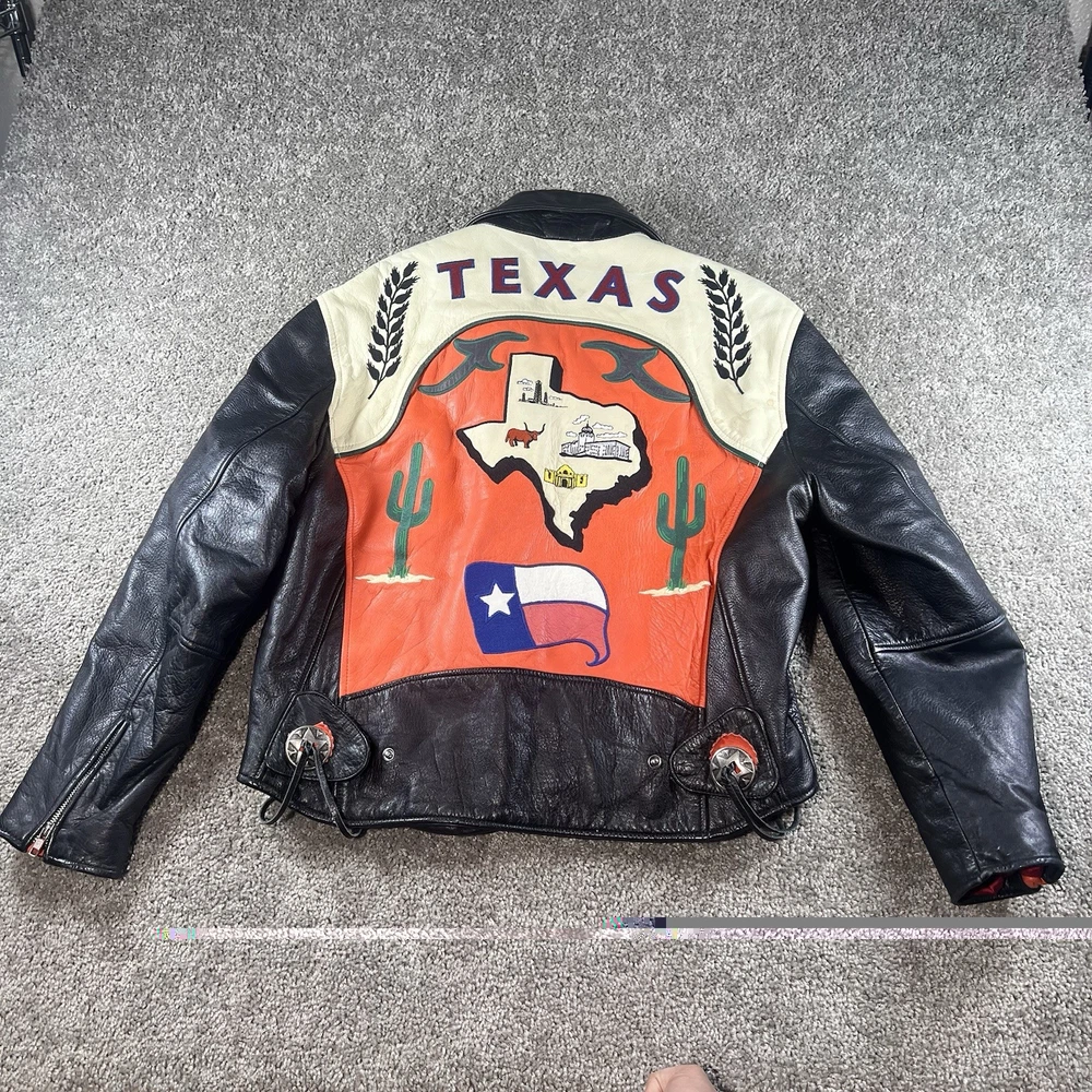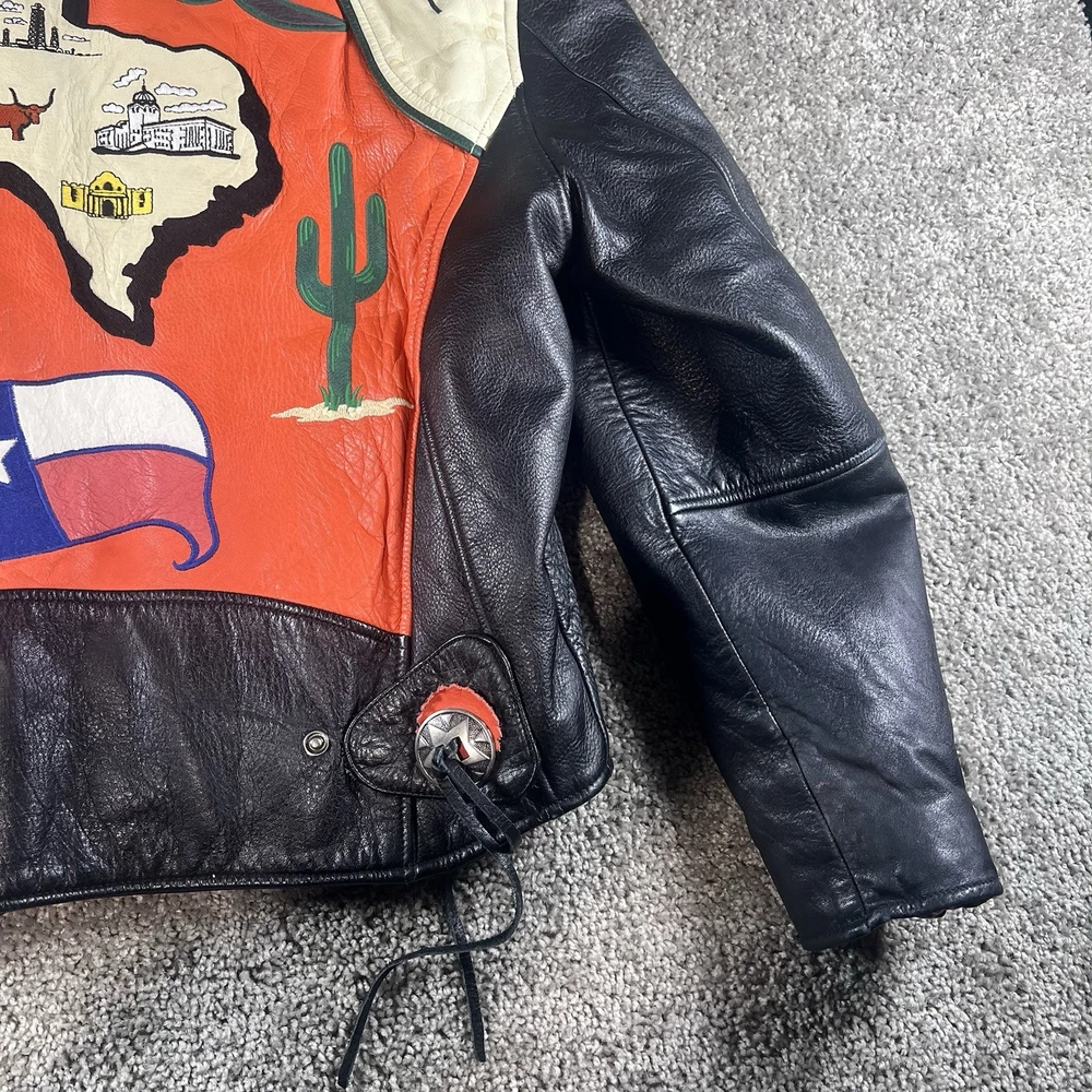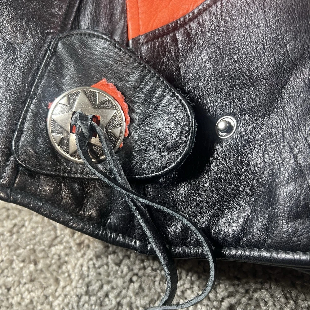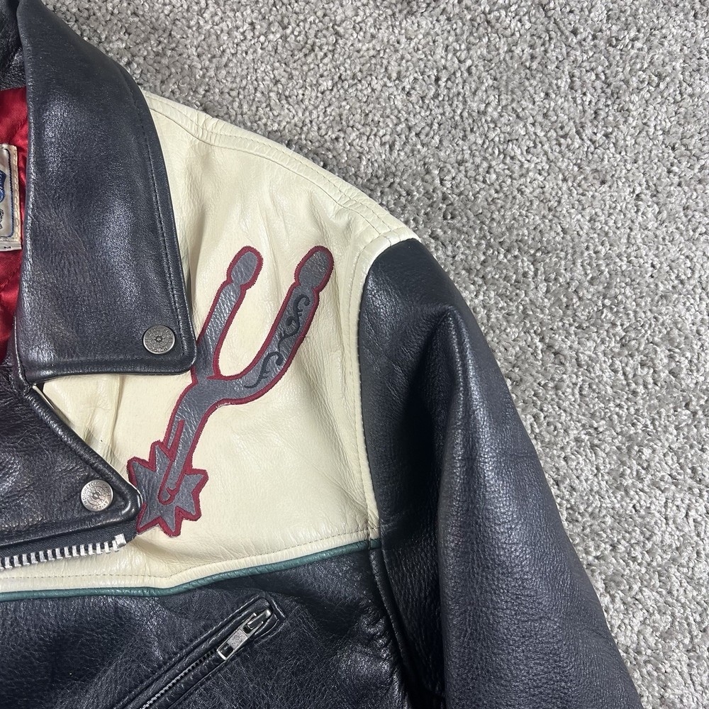 The Vintage Avirex Texas Motorcycle Jacket in Black and Red Leather is a stylish and classic piece from the 1990s. This medium-length jacket is perfect for casual occasions, with its solid black color and Accents zipper. Made from high-quality leather and insulated with polyester, it offers both durability and comfort. The Avirex brand adds a touch of authenticity to this motorcycle jacket, making it a timeless addition to any wardrobe for the winter and fall seasons.