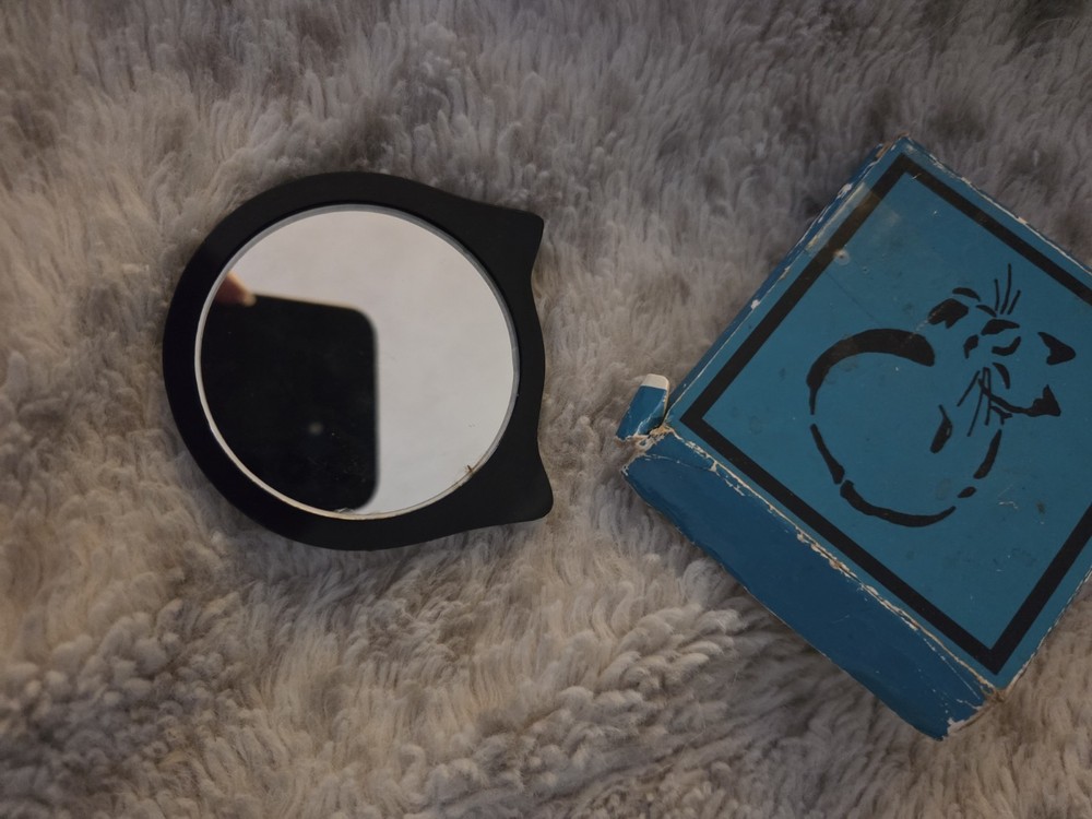 Experience a touch of vintage charm with the Avon Kompact Kitten Black Cat Mirror N5311, a delightful addition to any Americana collection. Crafted from durable plastic, this piece dates back to 1989 and showcases the intricate design and craftsmanship synonymous with the Avon brand. The iconic black color and original mirror make it a standout collectible. Ideal for collectors and enthusiasts alike, the origin of this compact remains a mysterious allure, adding to its appeal. Its unique style and classic appeal make it a perfect display item for your vanity or a cherished spot in your collector's showcase.