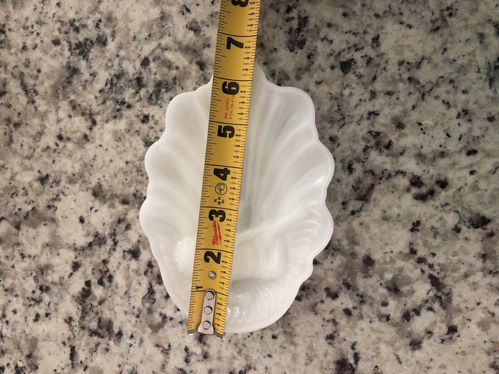 No chips or cracks. Classic milk glass Would be beautiful with decorative soaps or even candies.
