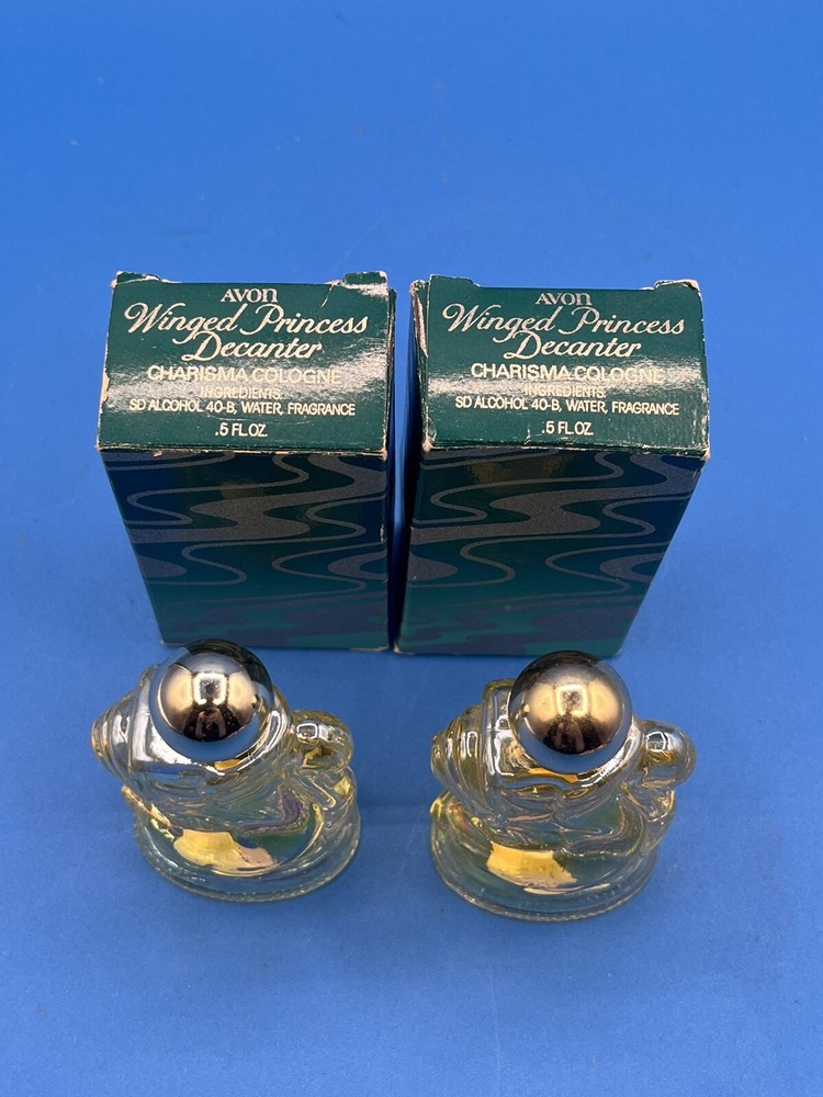 LOT 2 VINTAGE AVON WINGED PRINCESS DECANTERS “Charisma” COLOGNE .50 Fl Ozs NOS IN BOX